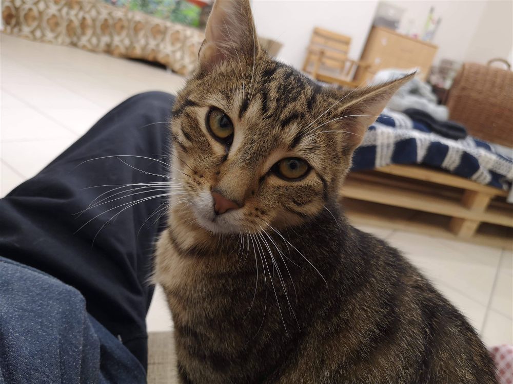 Uwielbia głaskanie, zawołana- od razu przybiega, ociera się i dopomina o pieszczoty 🙂 Umaszczenie – typowo bure, cechy charakterystyczne – duży i mięciutki brzuszek 😉