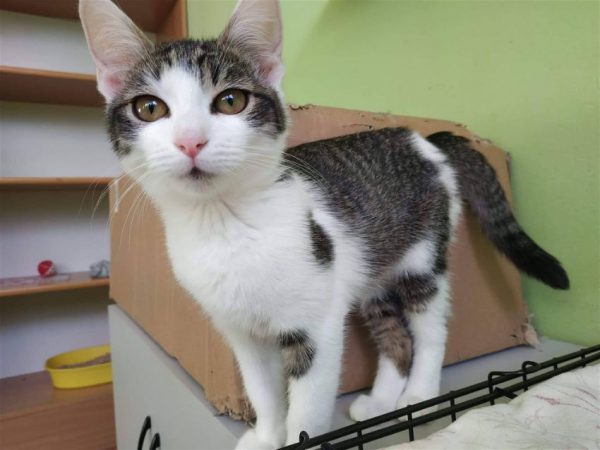 Kocurek ma wyjątkowe biało – szare umaszczenie i niezwykle mięciutką sierść 🙂