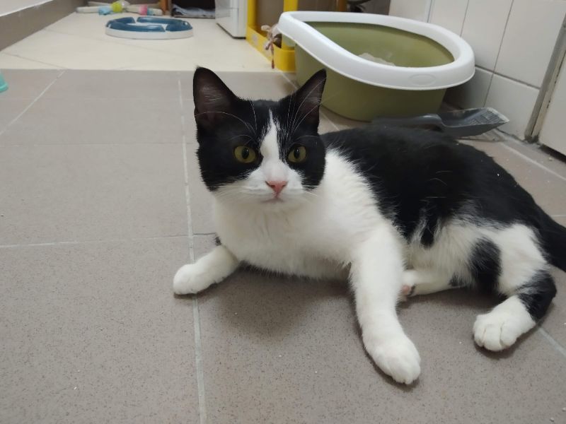 Ten spokojny kocurek o imieniu Tito, urodził się nieopodal jednej z naszych kociarni i był dzikim kotkiem. Zawsze jednak spoglądał na ludzi z zaciekawieniem, a z każdym dniem podchodził do nas coraz bliżej. Z nadejściem chłodnych jesiennych dni, niejednokrotnie pokusił się nawet, żeby wejść do budynku, lecz po paru minutach chciał uciekać.