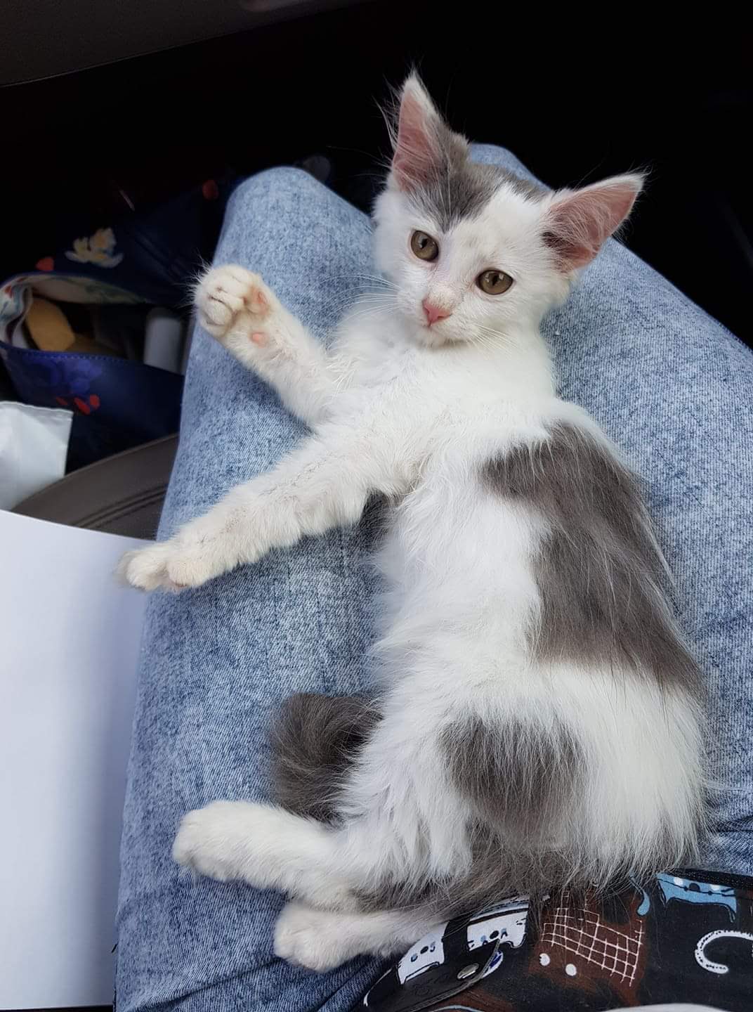 Otrzymaliśmy zgłoszenie o kociątku, wyrzuconym przy drodze w lesie. Maluszek podobno od dwóch tygodni płakał i nawoływał, lecz panicznie bał się ludzi. Był dokarmiany, lecz dla takiego maluszka to nie wszystko… To kocie dziecko powinno być jeszcze z matką. Samo nie potrafiło nawet znaleźć sobie schronienia.