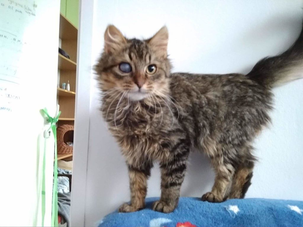 Jack w wyniku ciężko przebytego kociego kataru, ma ogromnego wrzoda na jednym oczku. Kociak wymaga wizyty u okulisty w Lublinie i zastosowania intensywnego leczenia, gdyż oczko mimo stosowania antybiotyków, wciąż ropieje.
