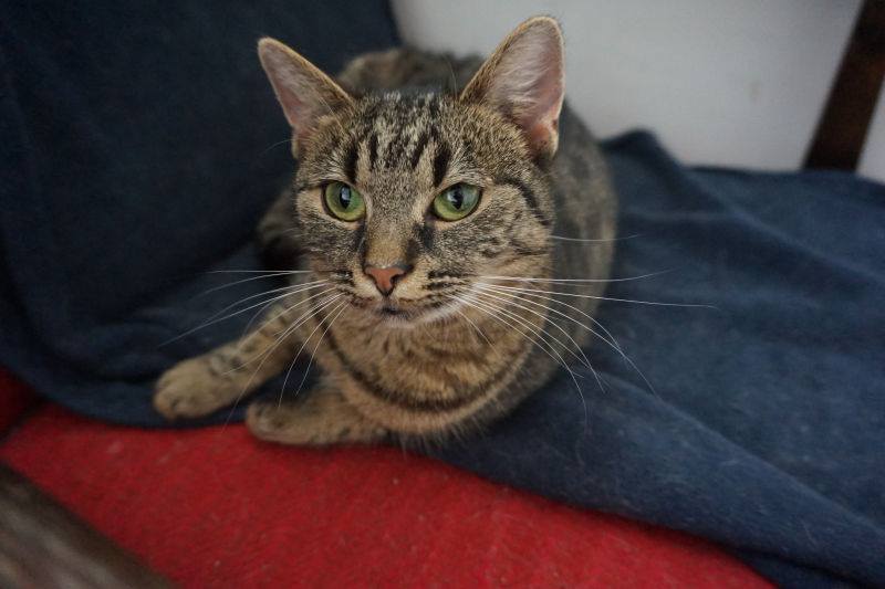 Rambinia jest już pod opieką fundacji od kilku lat. Kotka w wieku około 4 miesięcy została zabrana w największe mrozy z ogródków działkowych. Początkowo myśleliśmy, że jest kocurkiem i otrzymała imię Rambo 😉 Rambinia nigdy nie oswoiła się się do końca, jest kotkiem płochliwym, ale lubi towarzystwo człowieka. Zawsze cieszy się na nasz widok, ugniata podłogę, a przy jedzeniu mruczy i daje się wygłaskać. Jest łagodnym kotem, który w cierpliwym i spokojnym domu czułby się najlepiej.