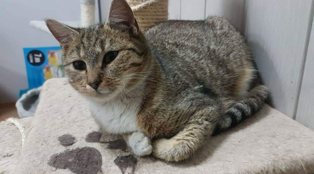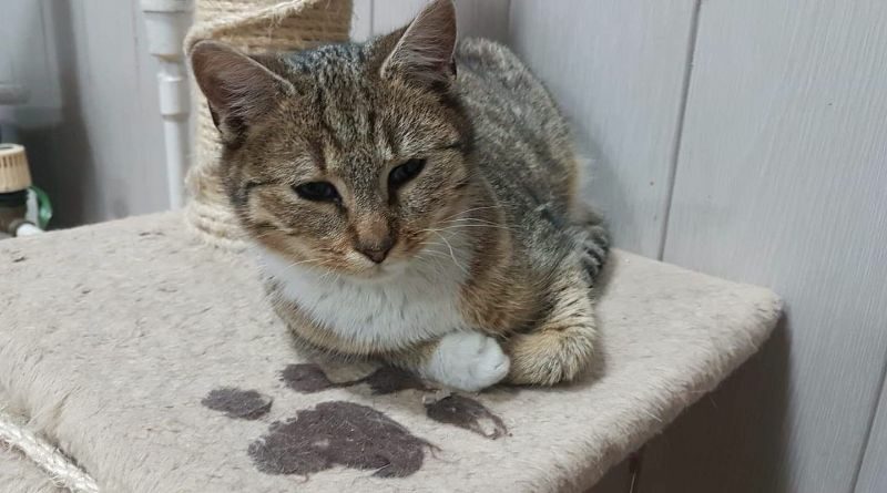 Kocurek był cały brudny, przeraźliwie chudy, a przez kilka dni po przyjęciu go do nas, wymiotował folią i innymi śmieciami, co wskazuje na to, że rozpaczliwie poszukiwał jedzenia.