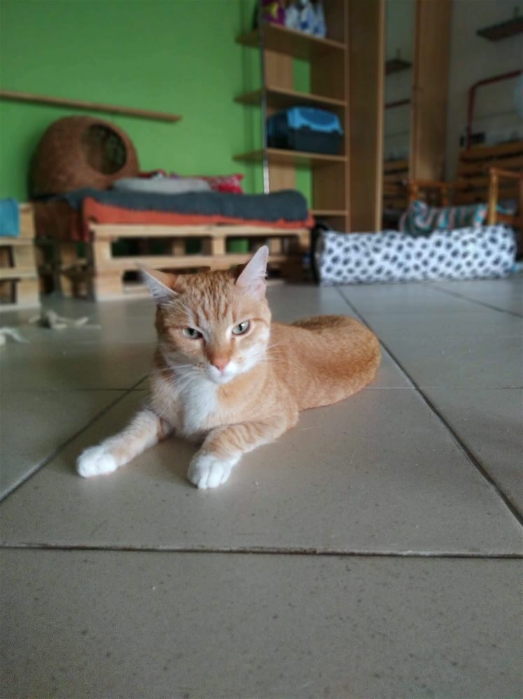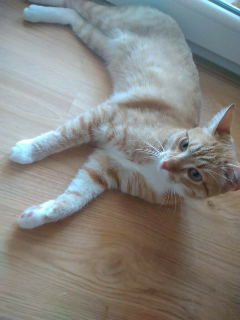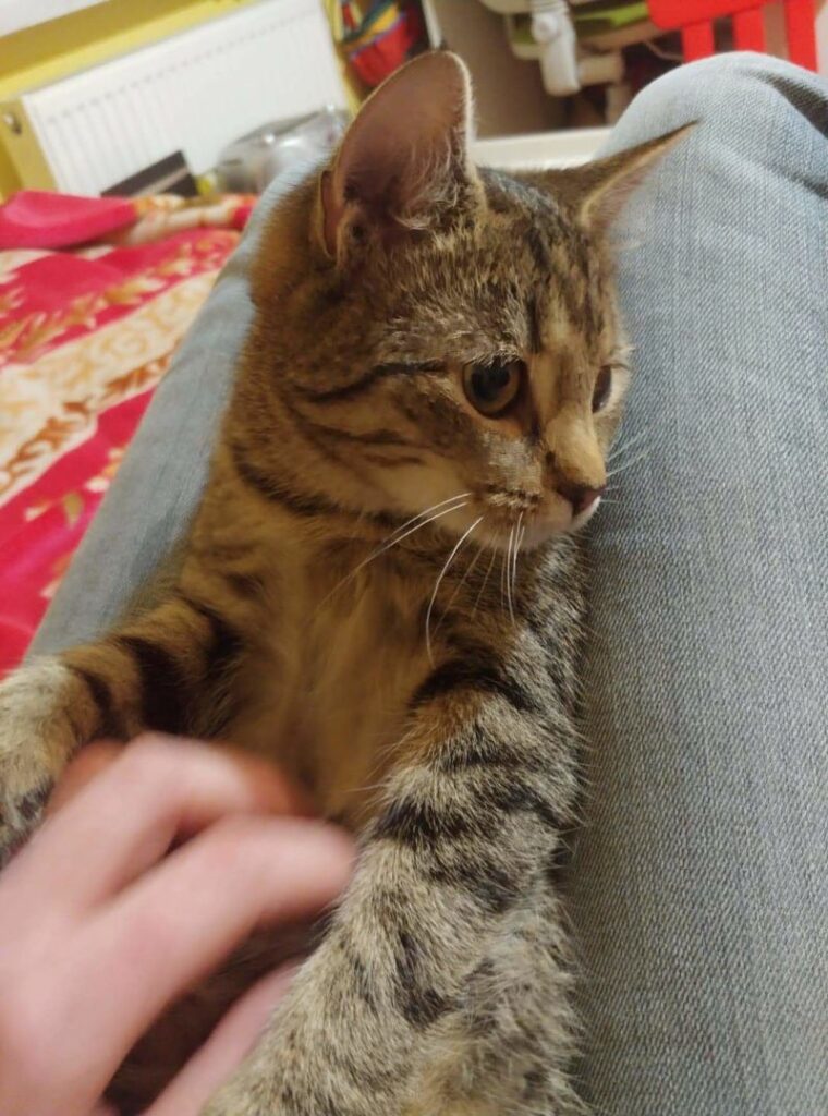 Dziś jest już dużym kotem i wciąż szuka domu. Jest rozgadany, trochę neurotyczny, pakujący się na kolana i egzekwujący głaskanko, wtedy kiedy on chce. Wszędzie go pełno i jest prawdziwą kocią osobowością. Taki kot dla konesera 😎 Uwielbia się bawić i pomagać w domowych obowiązkach. Do pokochania od zaraz.