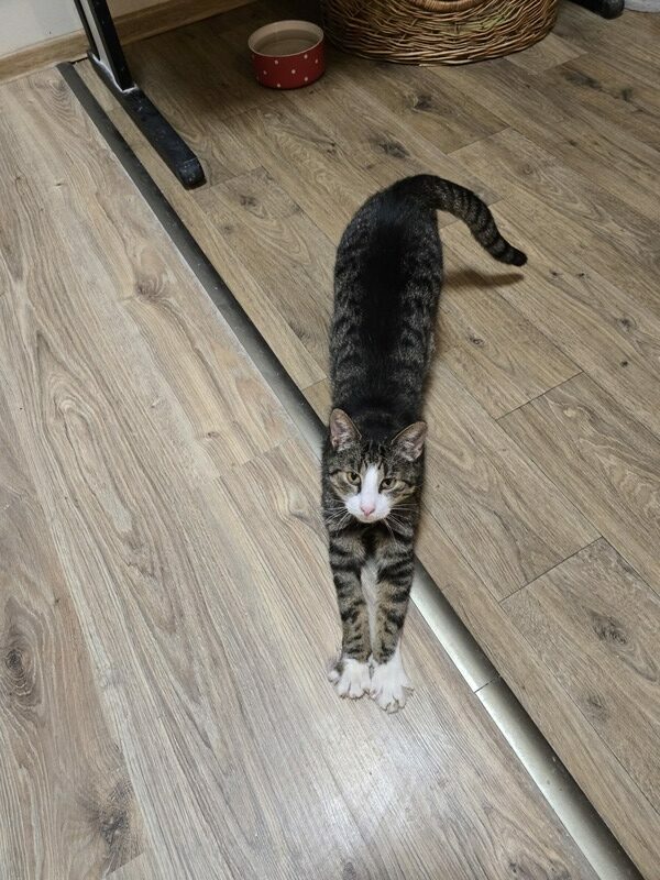 Jest pod specjalną opieką weterynaryjną obejmującą walkę z przewlekłym bólem, wynikającym prawdopodobnie ze zwyrodnień, udało się wyleczyć stan zapalny dolnych dróg oddechowych, a jego brzuszek w końcu przestał boleć …
