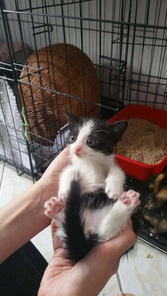 Atari przybył do nas wraz z mamą oraz braćmi. Uwielbia się bawić i poleca się do adopcji.