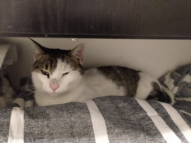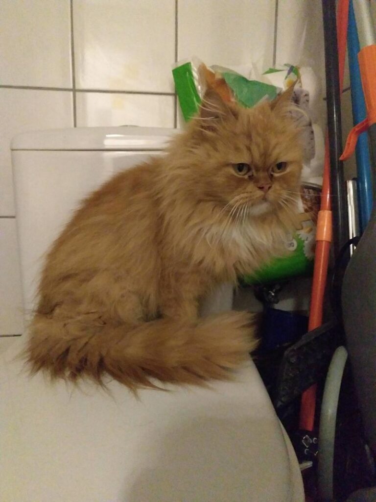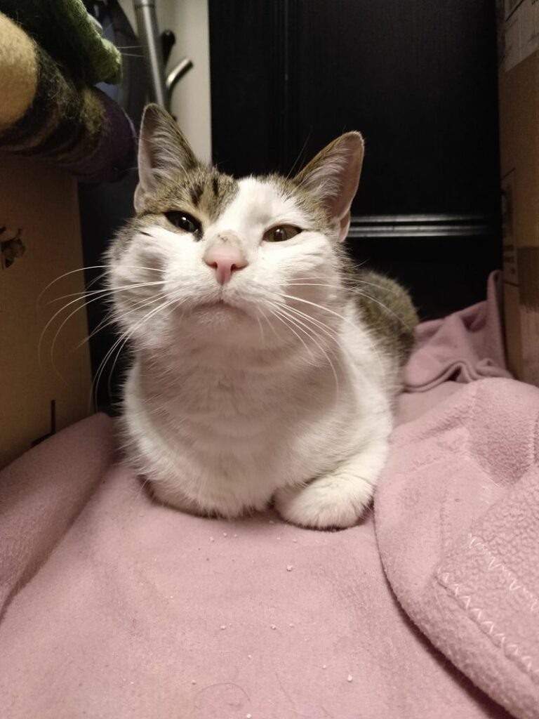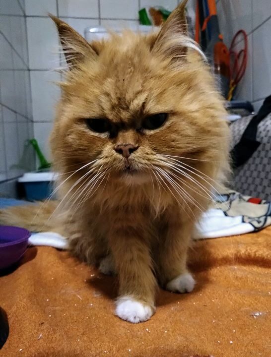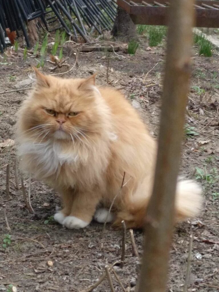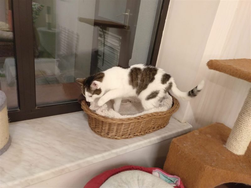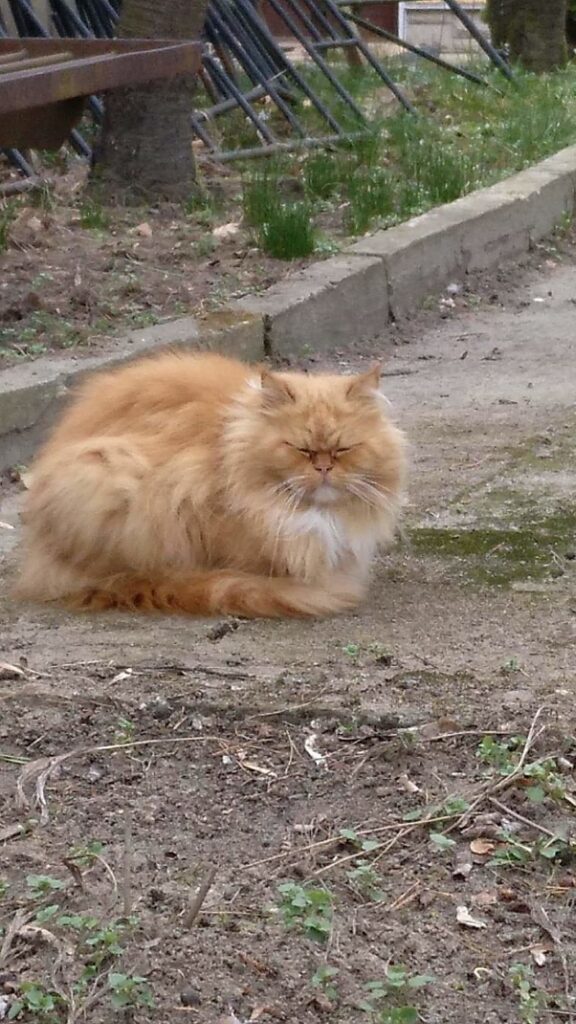 Kotek zabrany spod kościoła, błąkał się tam kilka miesięcy. Wygląda na rasowego kota – persa. Kotka jest piękna, ale charakterna. Wymaga dużo pracy, cieprliwości i ochraniaczy na rękach.
