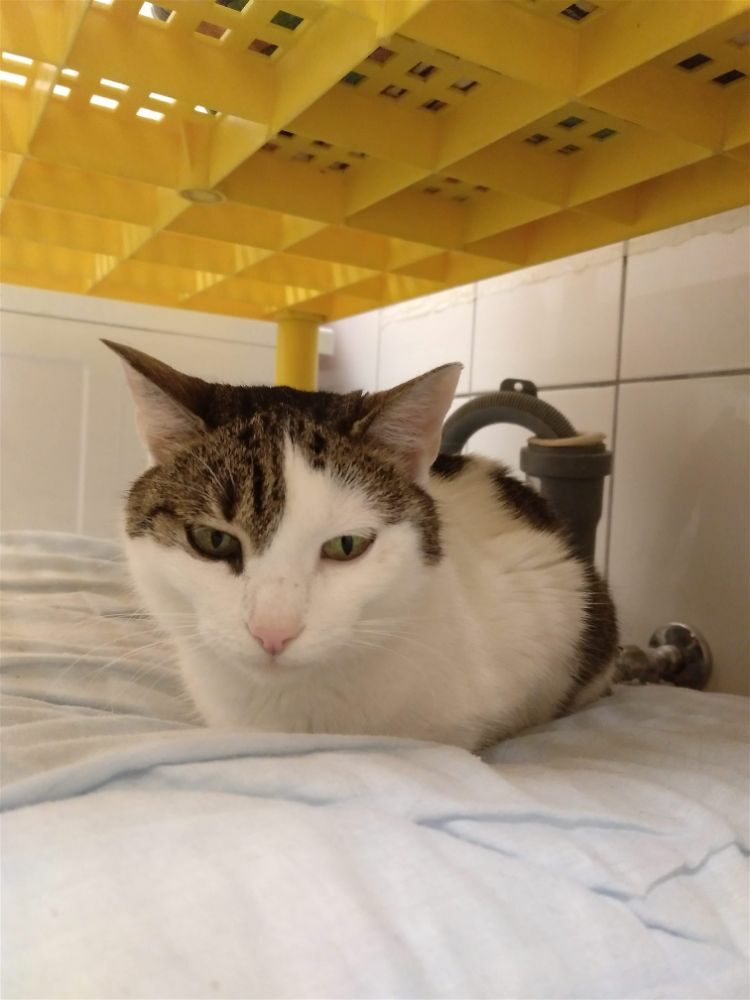 Kotka została zabrana spod kościoła, łasiła się chodziła za karmicielami. Jest wyjątkowa, bodzie łepkiem do głaskania. Jest bardzo spokojnym kotkiem.