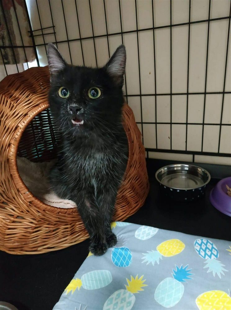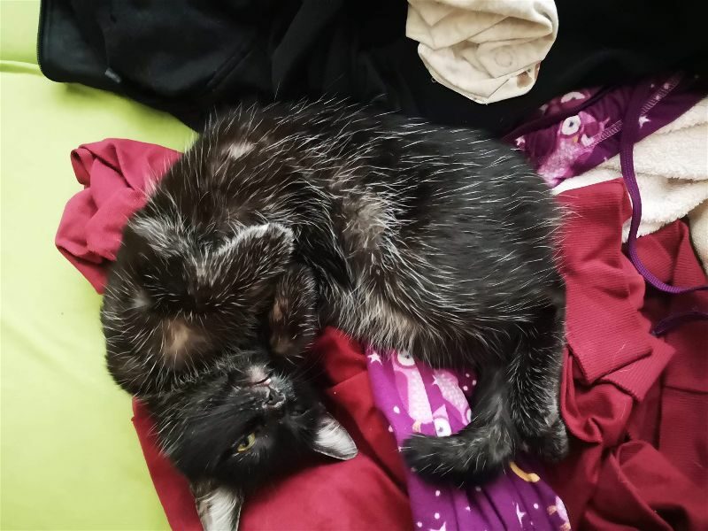 Malutki kociak przybył do nas w święta. Musiał długo błądzić, ponieważ jak tylko coś zjadł zmęczony od razu usnął. Jest miły, uwielbia zabawy. Szukamy mu domu tymczasowego lub stałego.
