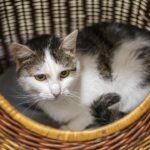 Przybłąkała się do starszej Pani w środku zimy. Była zmarznięta i wychudzona. Z pewnością wiele bólu ją w życiu spotkało, o czym świadczy jej oczko (niestety nie odzyska już na nie wzroku) oraz brak ogonka.