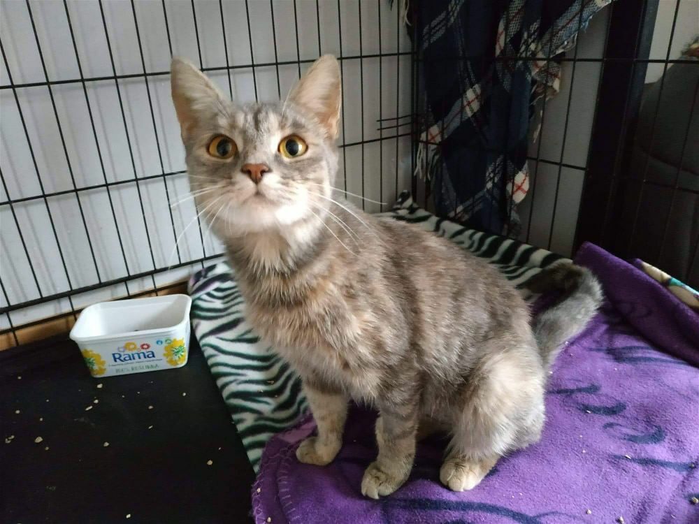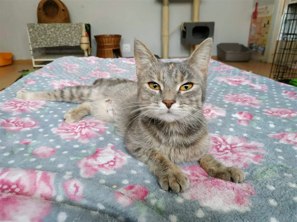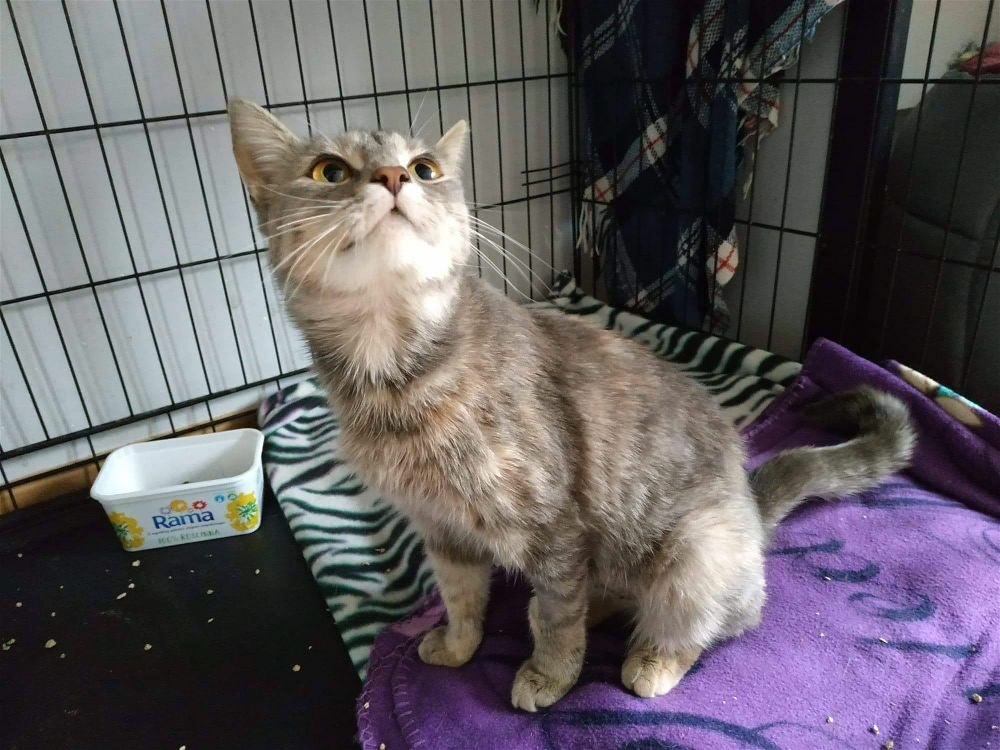 Uszatek został wypatrzony na jednym z osiedli w Stalowej Woli. Jego wygląd, w tym liczne rany i poszarpane uszka, wskazują, że wiele w życiu przeżył. Dziewczyny zabrały go do siebie, a następnego dnia do weterynarza. Okazało się , że kocurek ma początek niewydolności nerek, białaczkę i FIV (białaczkę potwierdzimy badaniem pcr).