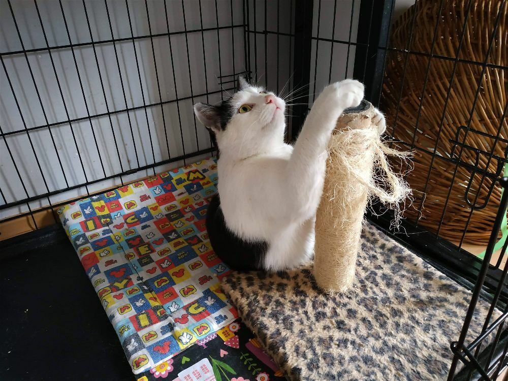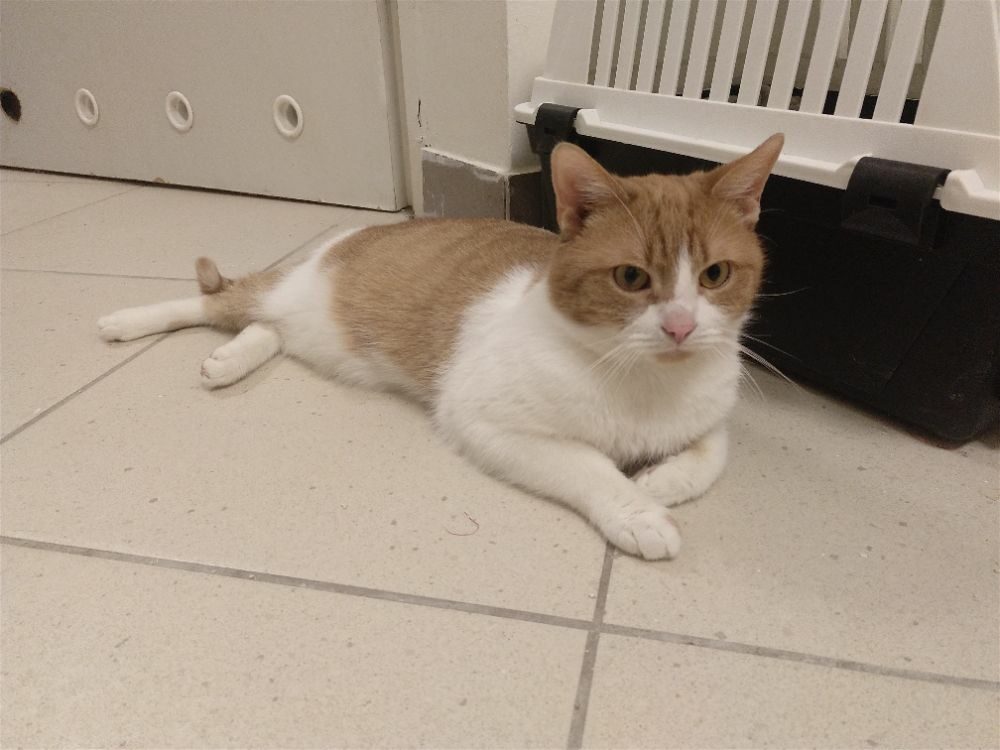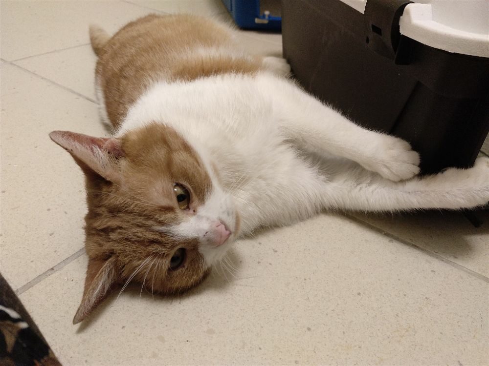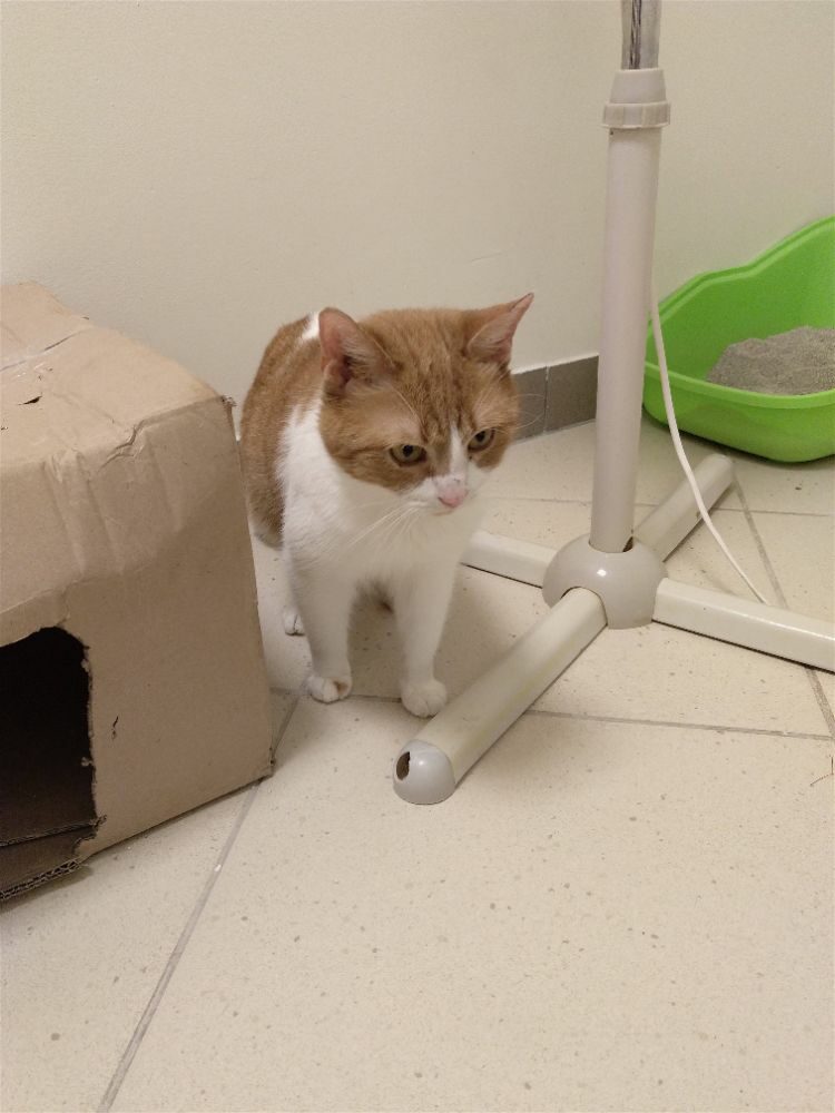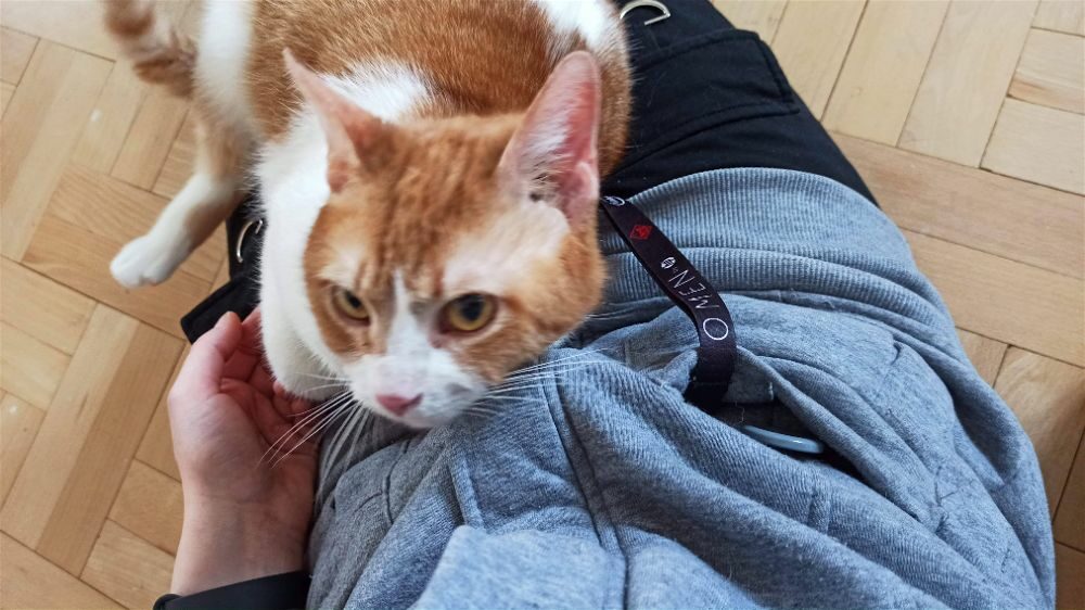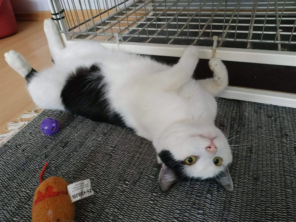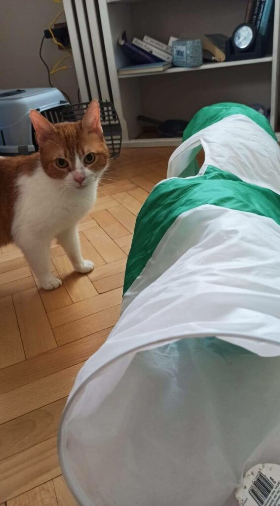 Purro zaczął ufać ludziom. Czasem jeszcze się chowa, ale pogłaskany wystawia główkę, mizia się i wykłada.