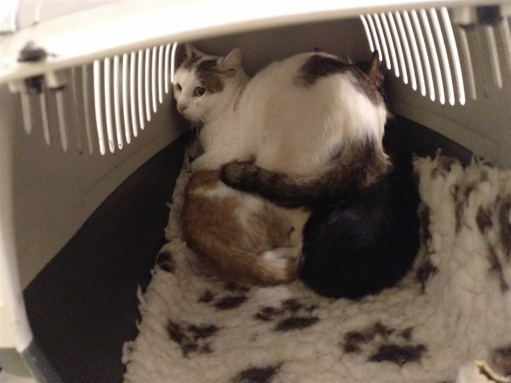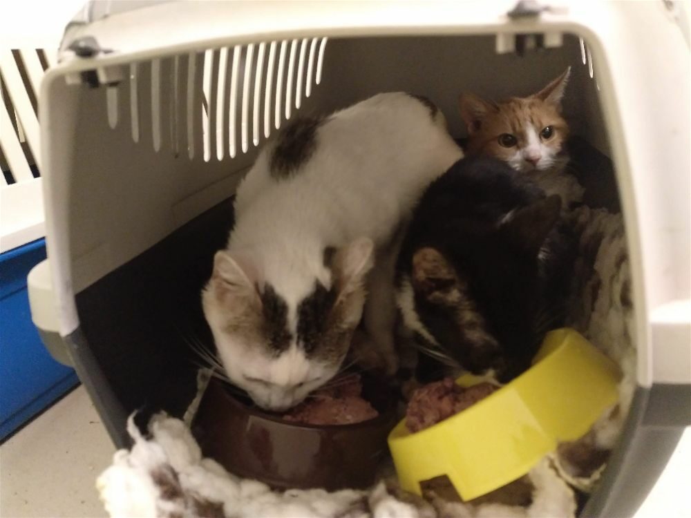 Prawie 50 kotów, zamkniętych na powierzchni 30 metrów kwadratowych, w brudzie i we własnych odchodach. Wśród nich karmiące kocice z maluszkami, koty głodne, chore i zarobaczone. Po śmierci opiekunki, groziła im wszystkim zagłada, lecz dzięki dobrym ludziom mają cień szansy. Koty od trzech tygodni zamknięte były w transporterach, osoba która je tam zastała musiała od czegoś zacząć. Część została zabrana w pierwszej turze interwencji przez Fundację Felineus… pozostała część trafiła między innymi do nas. Wyciągane były z transporterów, gdzie spędziły długie tygodnie. Część z nich ma odparzenia, część biegunki, część przykurcze, które utrudniają im poruszanie się. Koty mają pchły, świerzbowca, tasiemca… są skrajnie wychudzone i ledwie żywe ze strachu. Z każdym dniem zaczynają ufać człowiekowi, dają się głaskać, cieszą z zabawek i jedzonka.