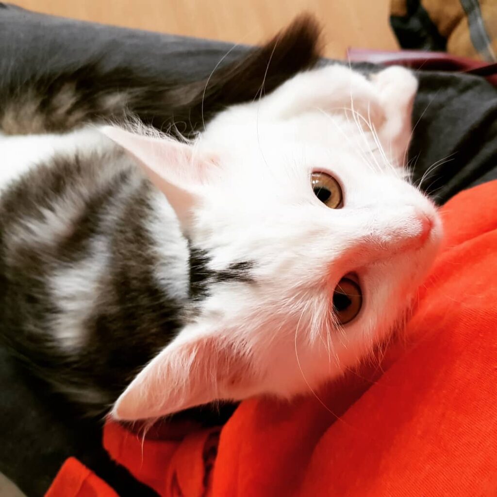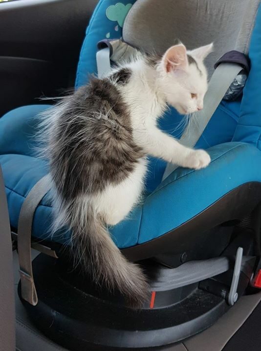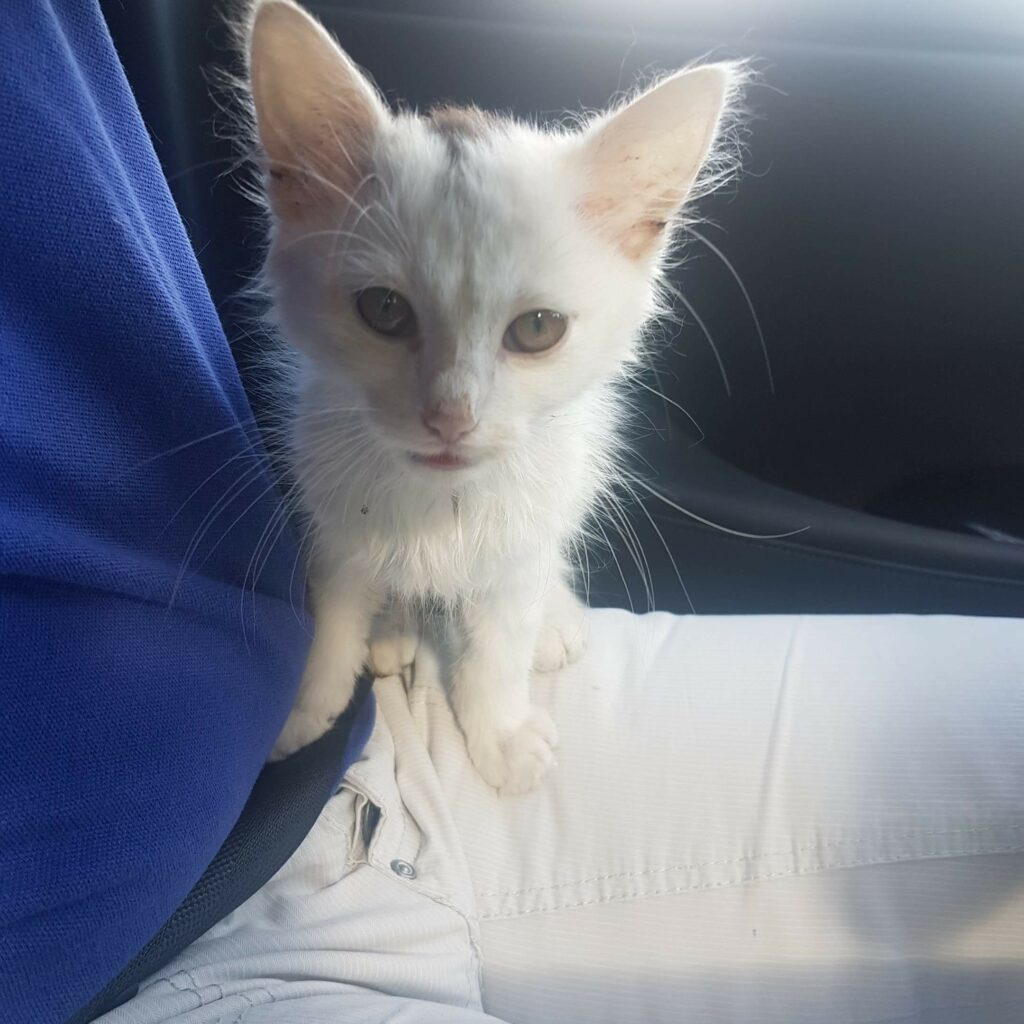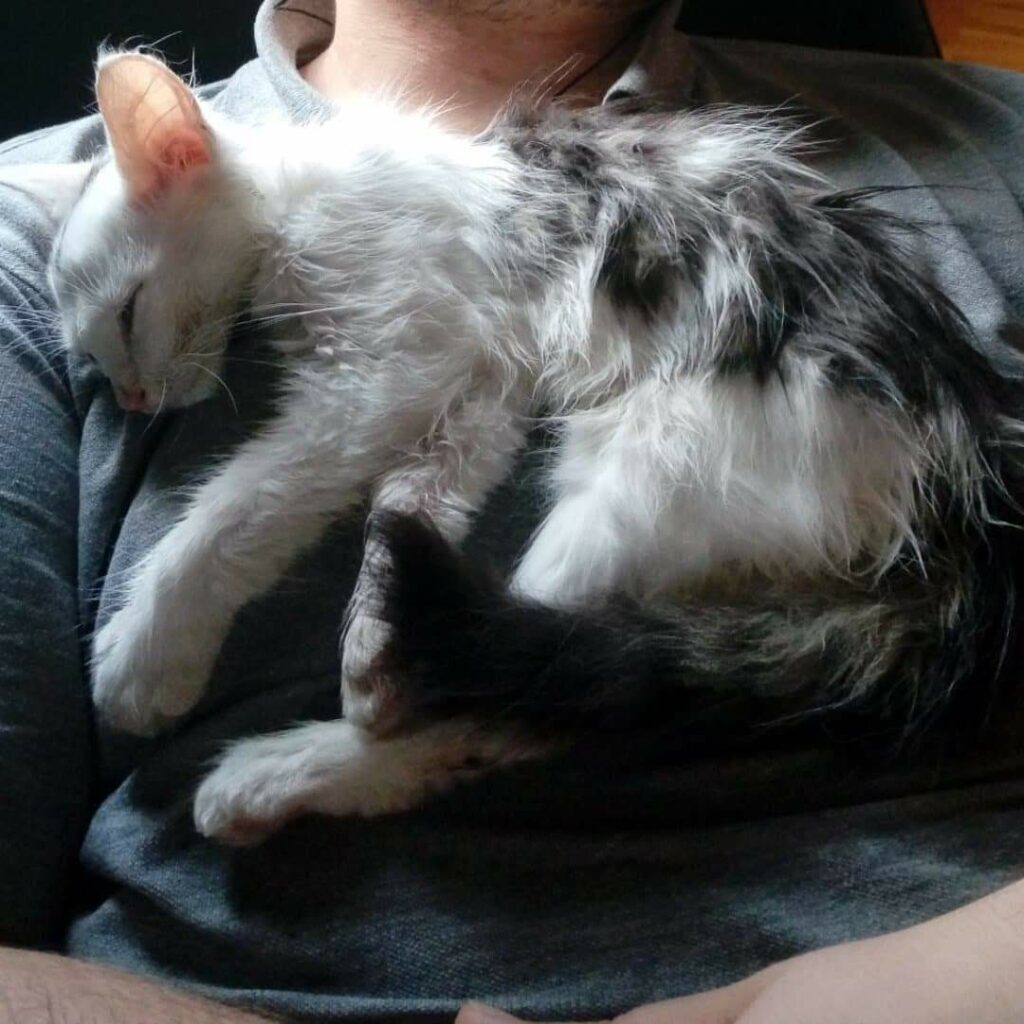 Ten oto kocurek znalazł się sam w środku lasu i bardzo głośno nawoływał mamę. Miał szczęście, że został zauważony przez rowerzystów, którzy go zabezpieczyli. Kocurek był wychudzony i miał biegunkę, ale już wrócił do sił po leczeniu w domu tymczasowym. Został zaszczepiony.