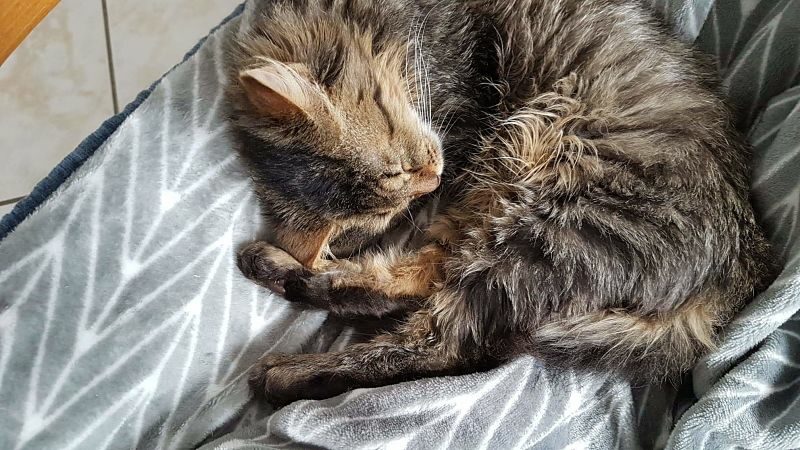 W tej chwili kotka cierpi na problemy żołądkowe, co może wynikać z długotrwałego niewłaściwego odżywiania i stresu.