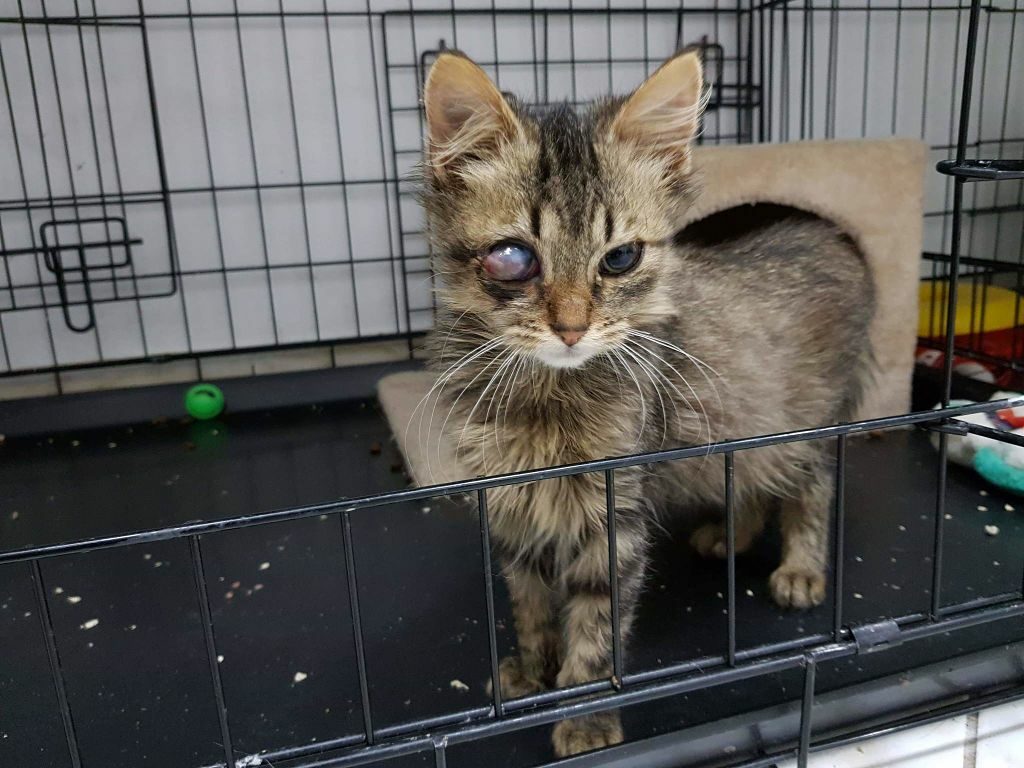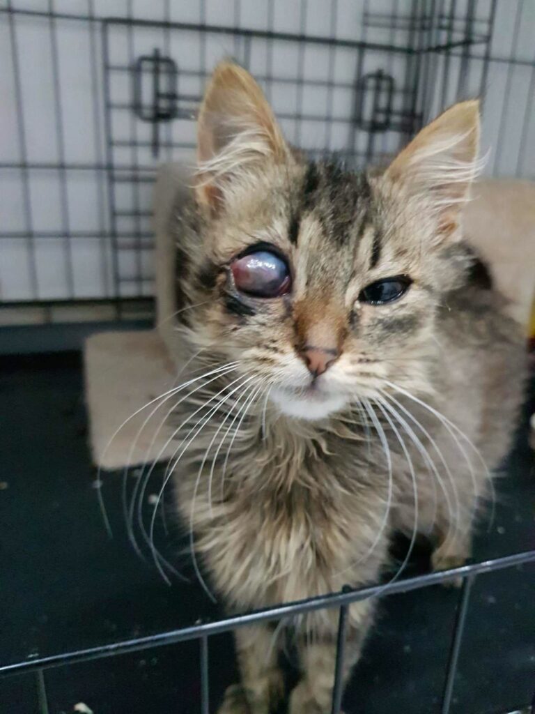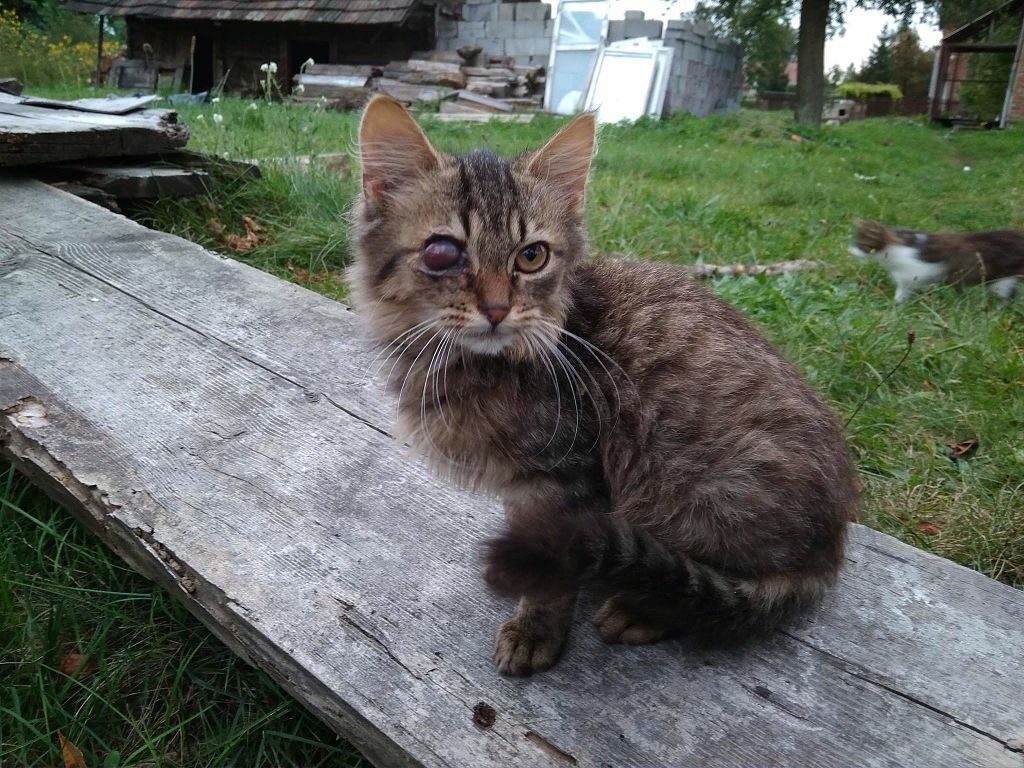 Jack w wyniku ciężko przebytego kociego kataru, ma ogromnego wrzoda na jednym oczku. Kociak wymaga wizyty u okulisty w Lublinie i zastosowania intensywnego leczenia, gdyż oczko mimo stosowania antybiotyków, wciąż ropieje.