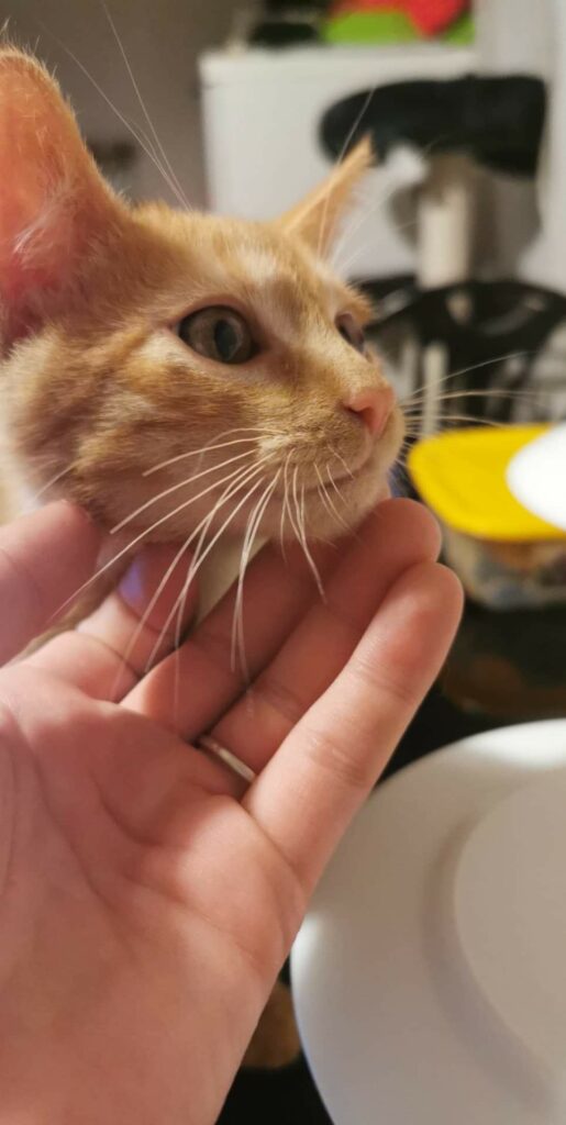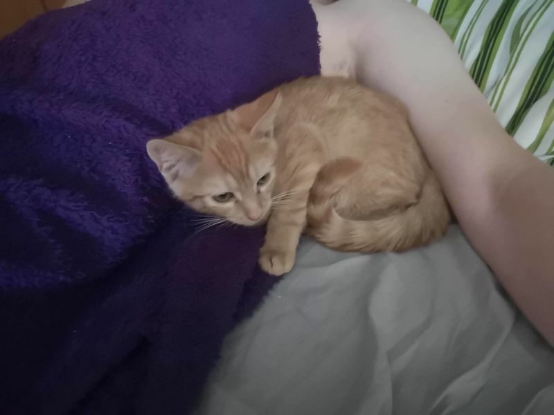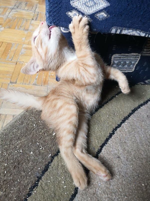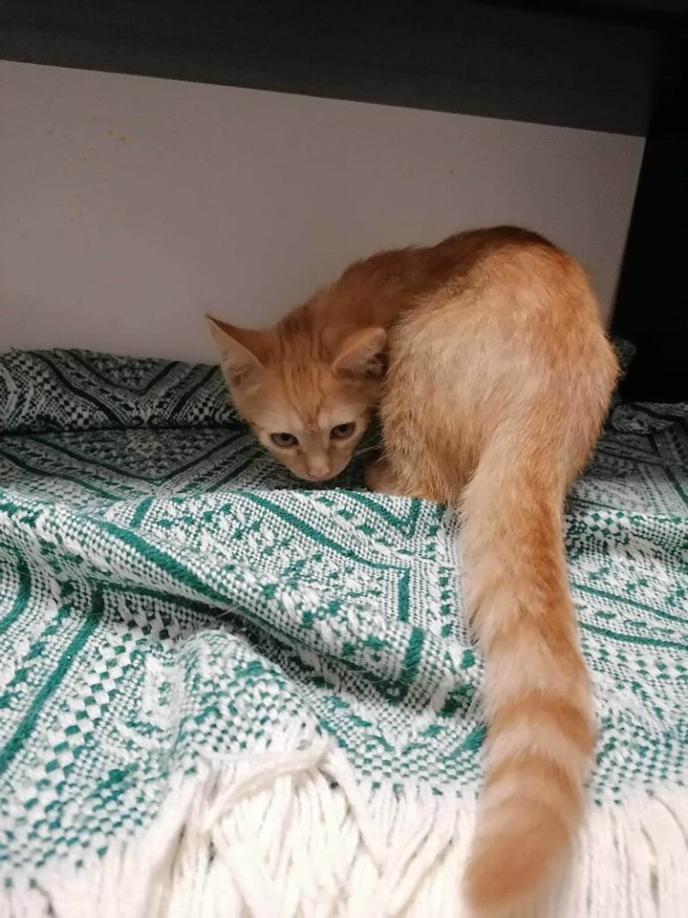 Kociak został wyrzucony z samochodu nieopodal fundacji, był przerażony i nawoływał. Teraz przebywa w domu tymczasowym, który niedługo musi zmienić. Kociak jest przyjacielki i bardzo pragnie kontaktu z człowiekiem.