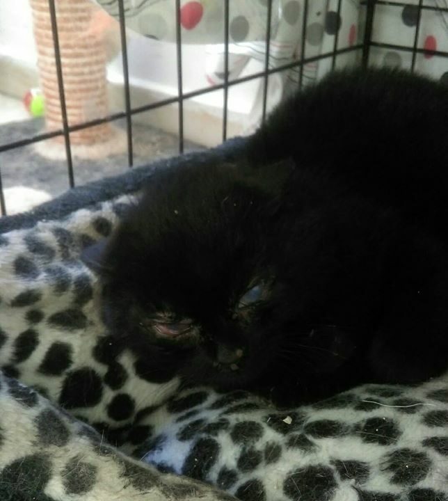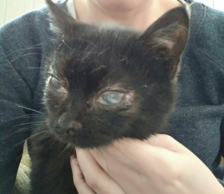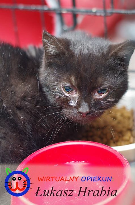 Pod naszą opieką jest mały Koksik. Kocurek trafił do nas z kocim katarem i poważnym stanem zapalnym spojówek. Był wolno żyjącym kociakiem skazanym na poniewierkę, a gdyby nie został zauważony, to najpewniej już by nie żył. Koksik nie chciał jeść, miał okropny katar, a jego oczy były całe oblepione ropą. Od trzech tygodni walczymy o jego oczy- o to, żeby nie zarosły. Obecnie dostaje już czwarty antybiotyk i dopiero zauważamy niewielka poprawę. Dostaje kilka rodzajów kropli i wymaga stałej opieki. Niestety doszło do uszkodzenia rogówek i kociak będzie niedowidzący, ale nie poddajemy się i walczymy o jego jak najlepszą sprawność.