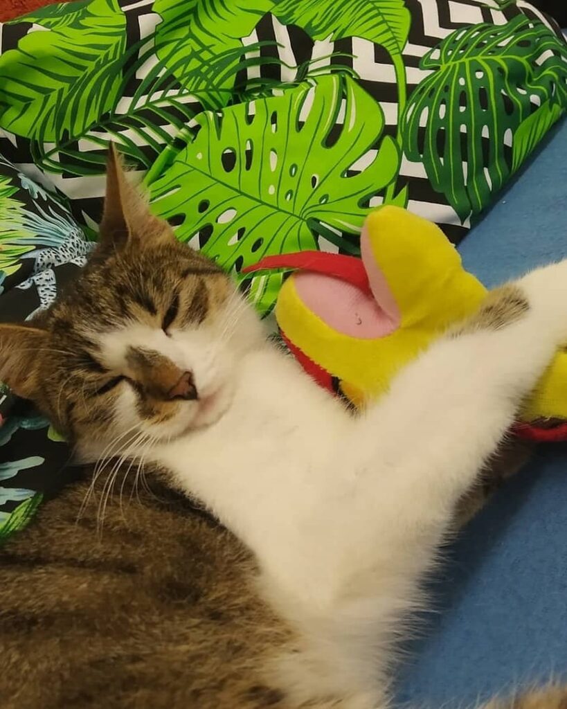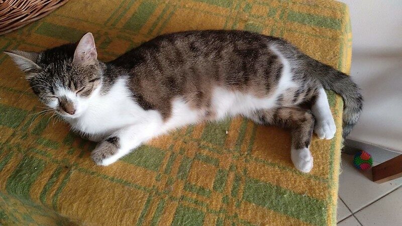Tymek jest kotem wyluzowanym i wiecznie śpiącym. Nie rozrabia, nie niszczy, nie miałczy. Tymuś śpi… ewentualnie coś zje i ułoży się na kolankach, pięknie mrucząc.