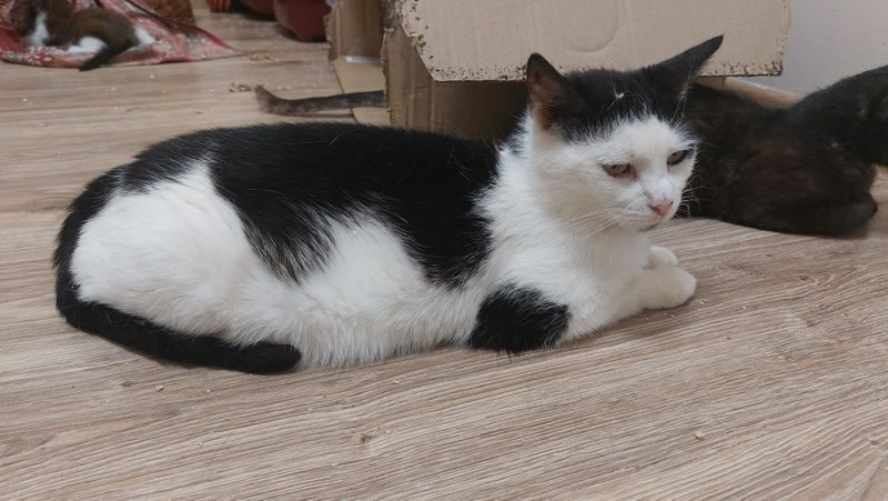 Halinka to jedna z najsłodszych kotek jakie w życiu widzieliśmy. Została znaleziona na targu gdzie wpakowała się sprzedającym do pudełek i słodko ugniatała. Niestety wszyscy musieli się już zbierać do domu a kotka zostałaby sama. Zabraliśmy ją do fundacji gdzie od pierwszych chwil mruczała i cieszyła się na widok opiekunów. Kotka ma w sobie tak ogromne pokłady miłości, że aż trudno uwierzyć że los skazał ją na tułaczkę i głód.