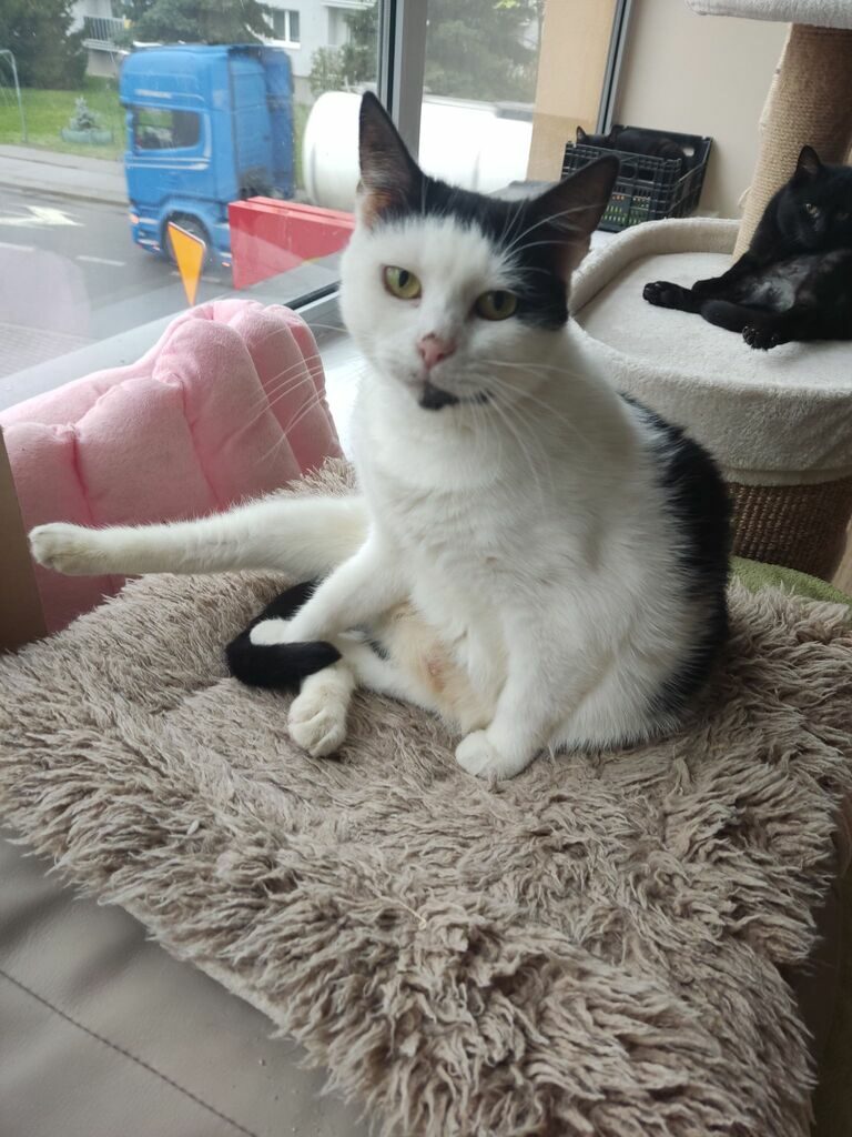 Kotka uwielbia ludzi i podczas dyżurów wciąż szuka kontaktu. Jest przy tym bardzo delikatna i nienachalna. Zwykle podchodzi i sama się przytula, nie oczekując nawet większej uwagi 😻