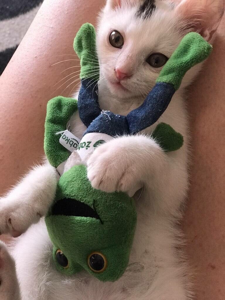 Kotek przynosi zabawki i korzysta z kuwety. Szuka domu, koniecznie z drugim małym kotem.