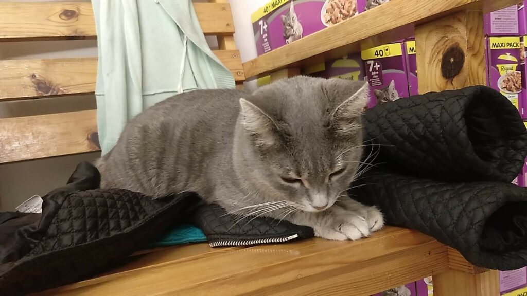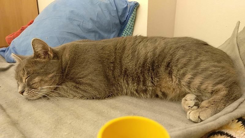 Tymek jest kotem wyluzowanym i wiecznie śpiącym. Nie rozrabia, nie niszczy, nie miałczy. Tymuś śpi… ewentualnie coś zje i ułoży się na kolankach, pięknie mrucząc.