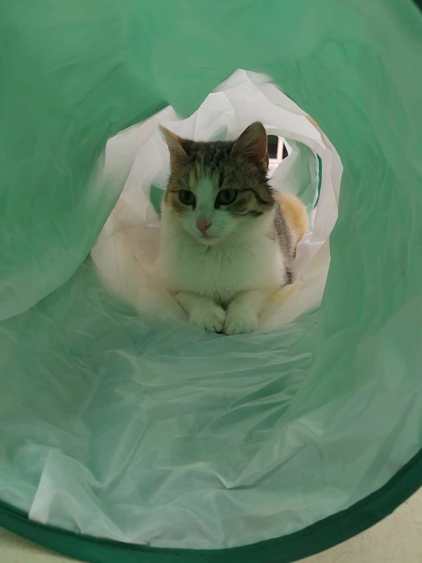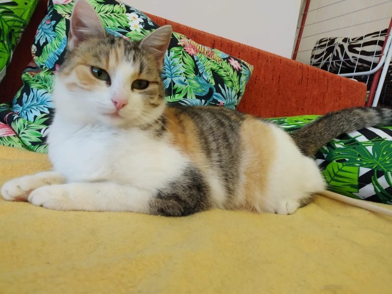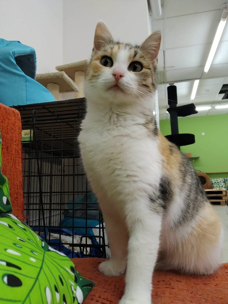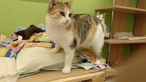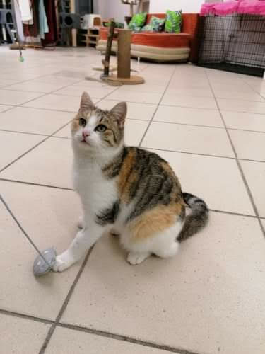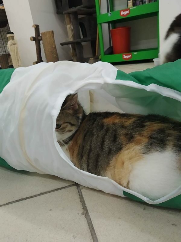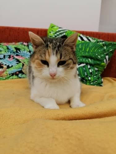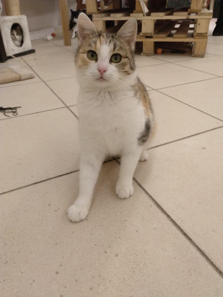 Bardzo przyjazna kotka, lubi kocie i ludzkie towarzystwo. Uwielbia głaskanie i zabawy. Gania za piłkami, sznurkami, biega jak szalona.