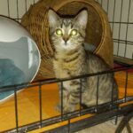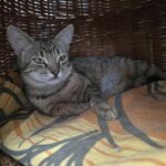 Koteczka ma około 6 miesięcy i jest przesympatyczną, rezolutną i odważną młodą damą.