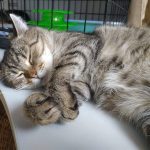 Faktycznie – w lesie siedział grubiutki burasek… ani nie uciekał, ani też nie dał do siebie podejść. Wyglądał, jakby bardzo chciało mu się spać, co mogło być wynikiem ogromnego zmęczenia. Porzucone koty, zwykle przez wiele dni nie śpią i kiedy trafiają do nas, długo odsypiają włóczęgę.