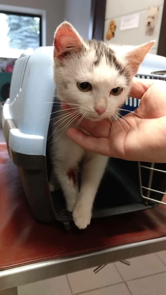 Kociak został znaleziony przy MOSiRze i obiecano mu pomoc w postaci dt. Na drugi dzień biegając za losowym przechodniem trafił do weterynarza. Okazało się że został wyrzucony z domu jeszcze tego samego wieczoru. Kociak ma poparzone uszko i świerzba, ale ma już dobrą opiekę. Szukamy mu domu, który go nie wywali za drzwi, a pokocha i się zajmie do końca życia.
