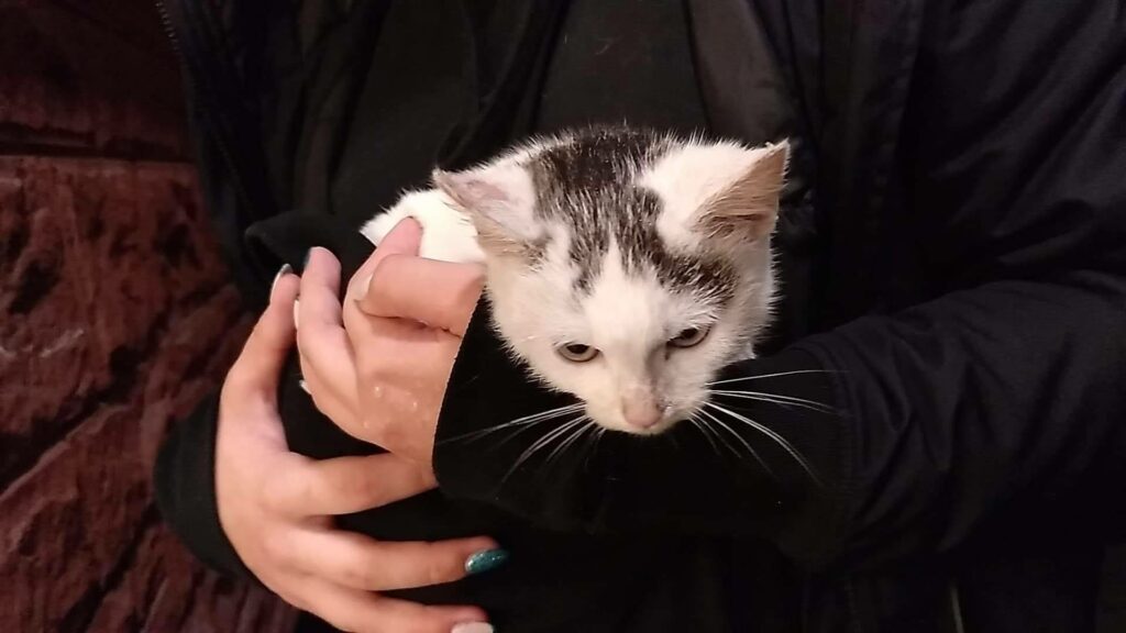 Kociak został wyrzucony z samochodu nieopodal fundacji, był przerażony i nawoływał. Teraz przebywa w domu tymczasowym, który niedługo musi zmienić.