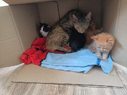 Ta interwencja na długo pozostanie w naszej pamięci. Trzy kocice i sześć bardzo ciężko chorych kociąt, porzuconych przy drodze w lesie. Na początku trafiło do nas niestety tylko część. Dzięki pomocy pań z Sandomierza, trafiły do nas kolejne koty, porzucone w lesie. Nerwowa kotka i chore maleństwo.