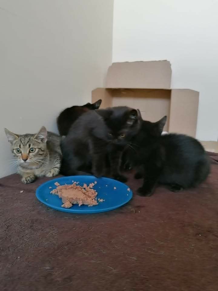 Kiedy tylko zwolniła się izolatka, odebraliśmy mamusię z trzema maluszkami. Już wcześniej zadbaliśmy o szczepienia całej rodzinki, aby nie zaraziły się u nas kocimi wirusami. Maluchy są do oswajania. Do oddania w drupaku.
