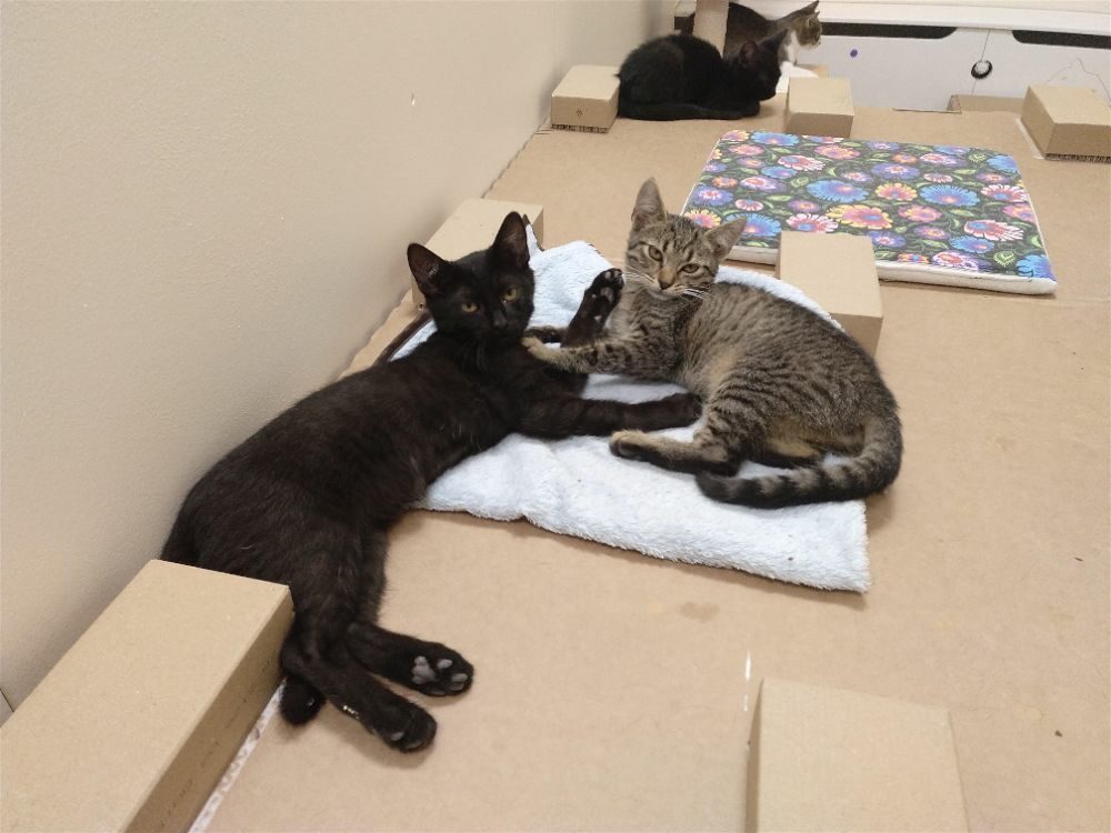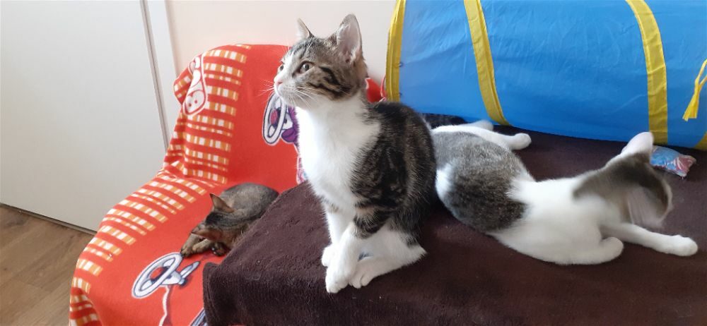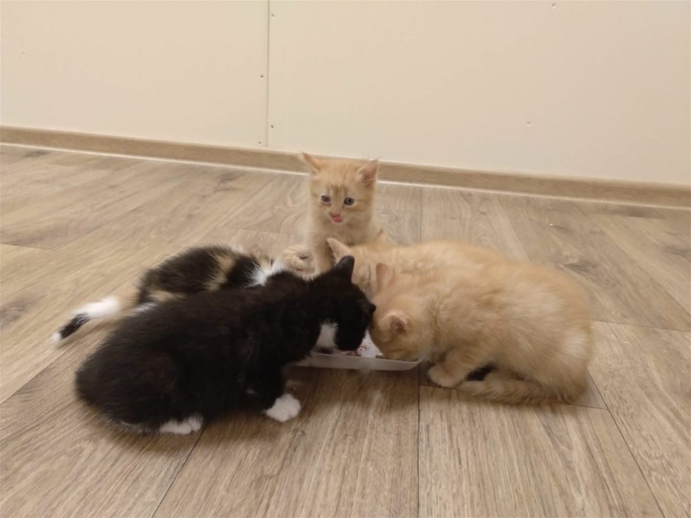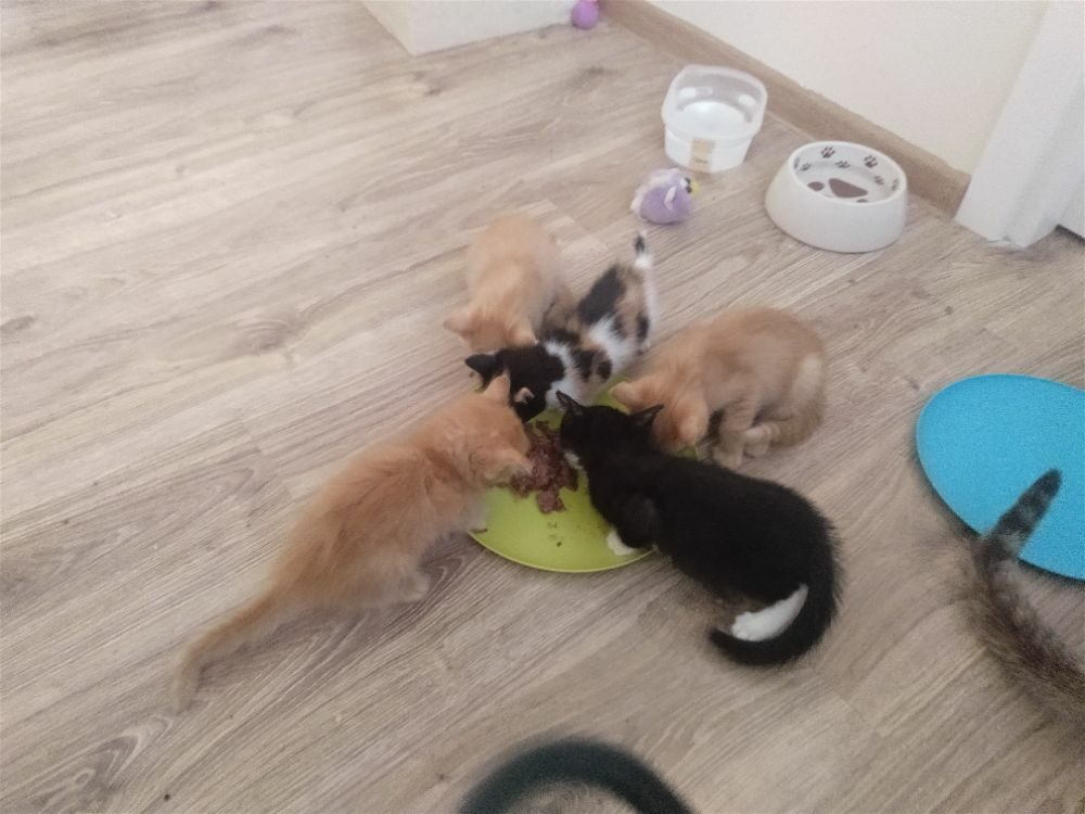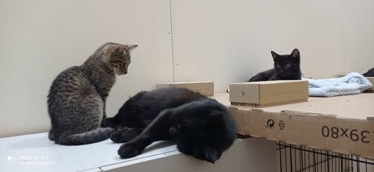 Kiedy tylko zwolniła się izolatka, odebraliśmy mamusię z trzema maluszkami. Już wcześniej zadbaliśmy o szczepienia całej rodzinki, aby nie zaraziły się u nas kocimi wirusami. Maluchy są do oswajania. Do oddania w dwupaku.