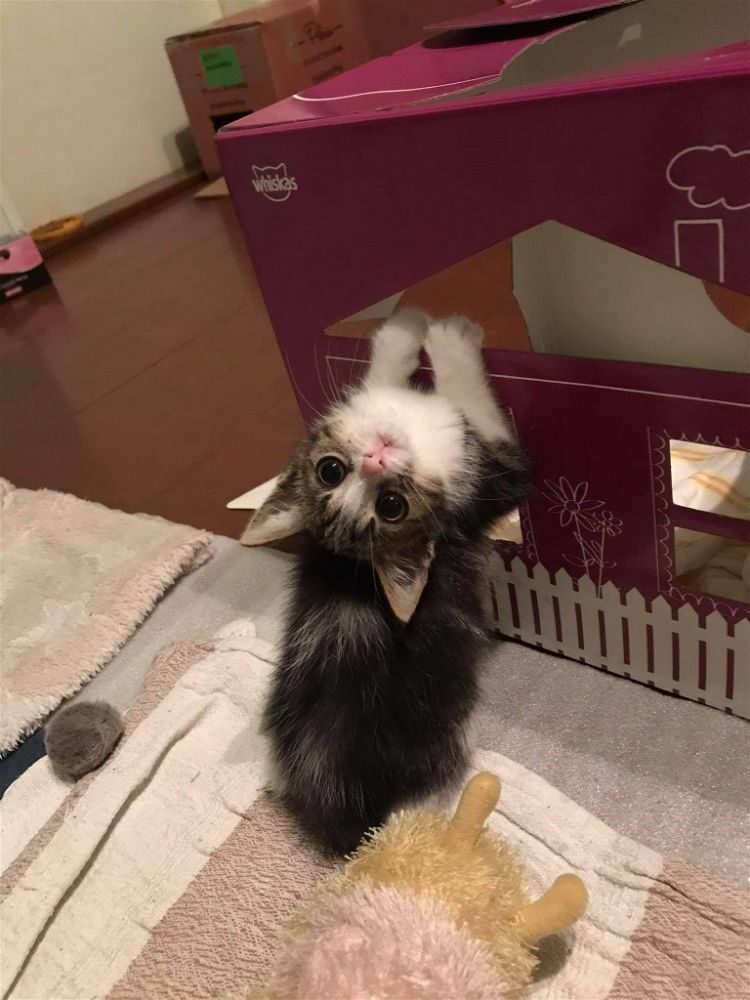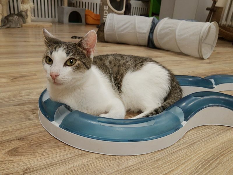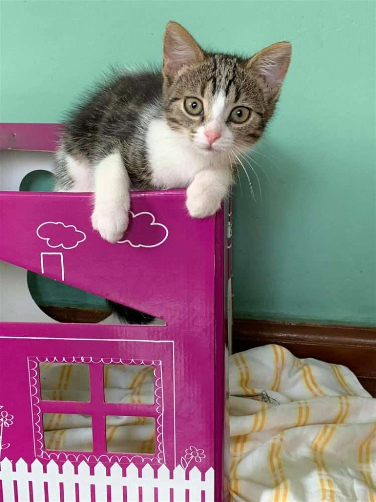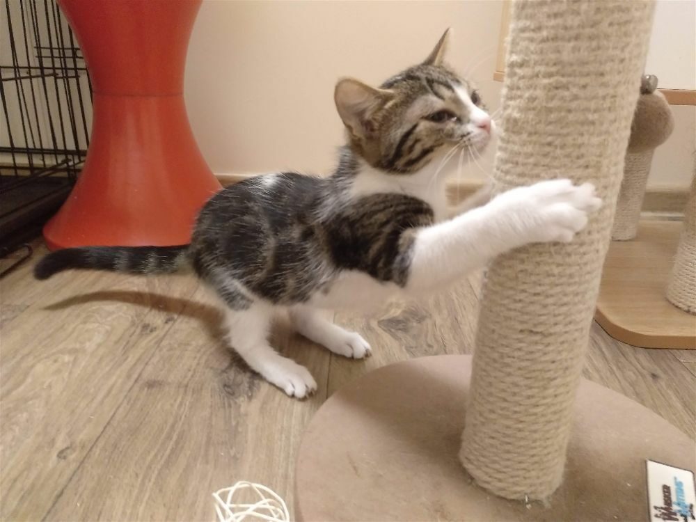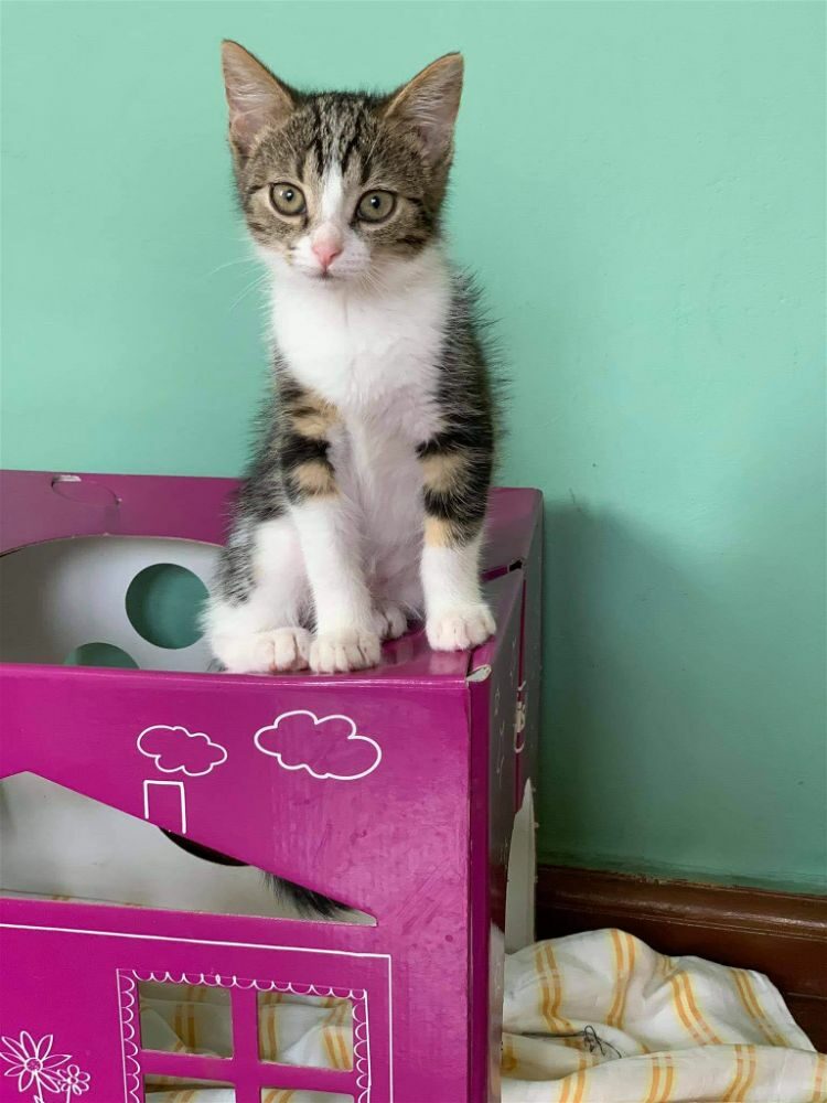 Koteczka jest bardzo towarzyska, uwielbia zabawy i głaskanie, jest też bardzo ciekawska.