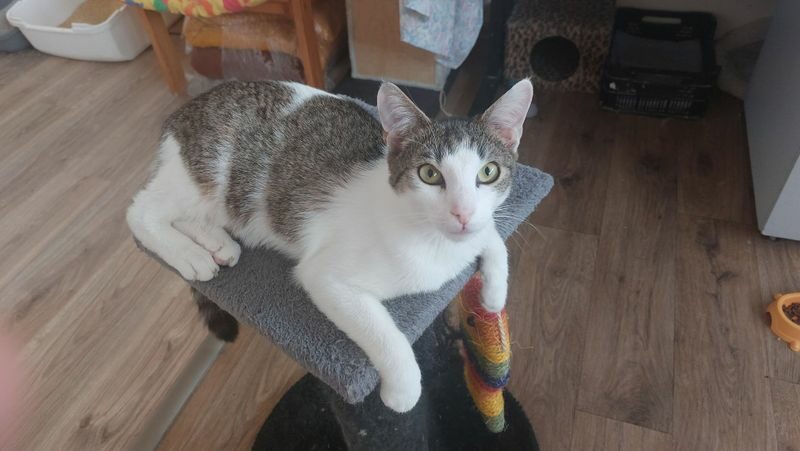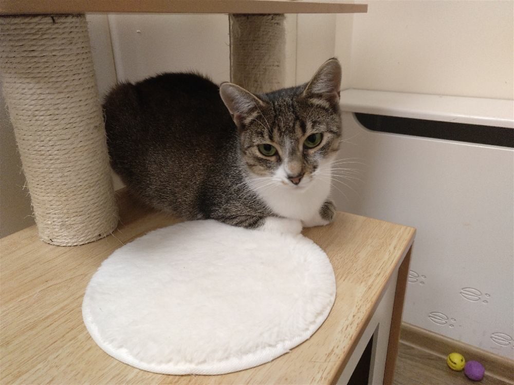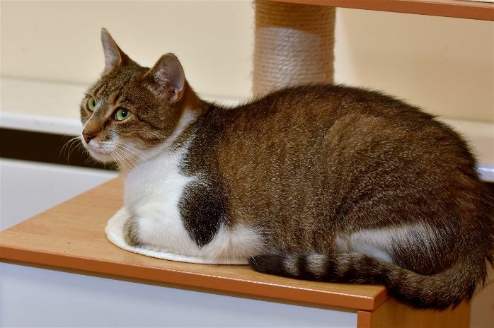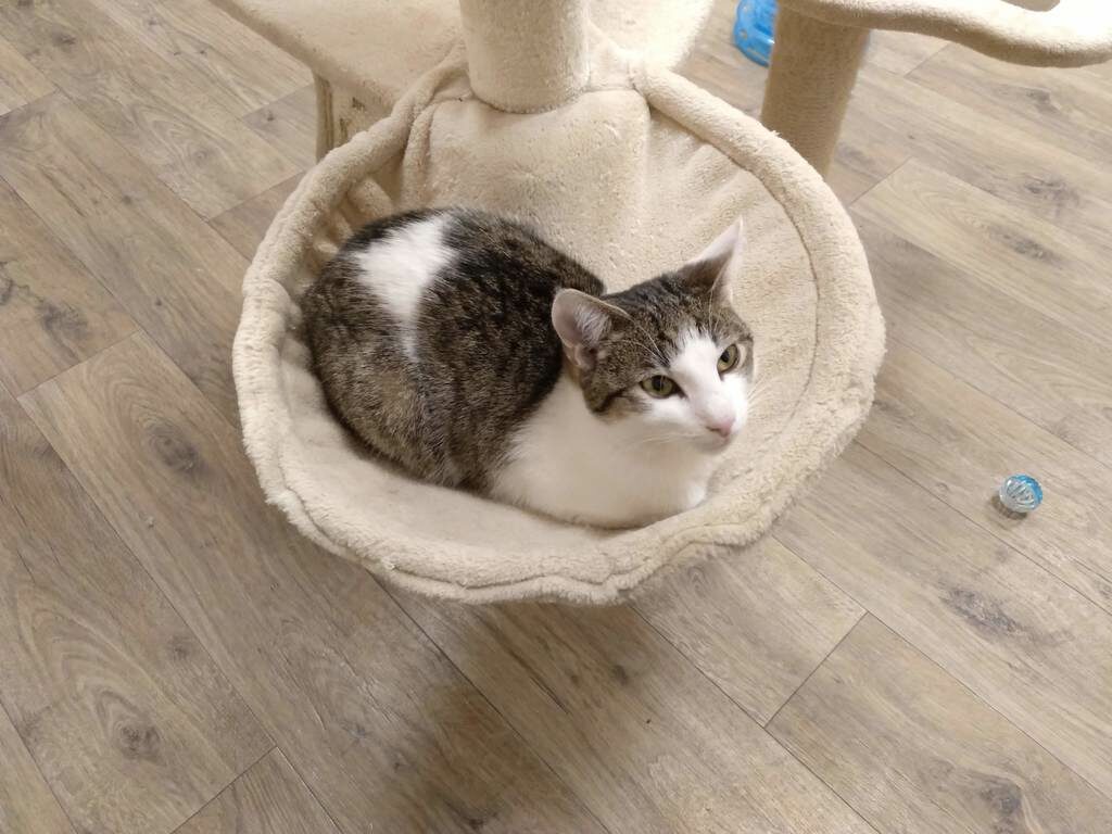 Kotka jest bardzo spokojna. Odchowała maluchy i szuka domu dla siebie. Bywa czasem płochliwa.