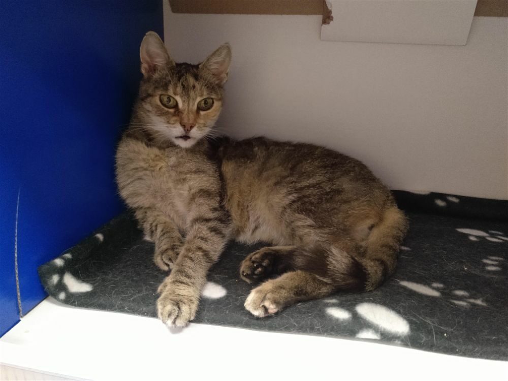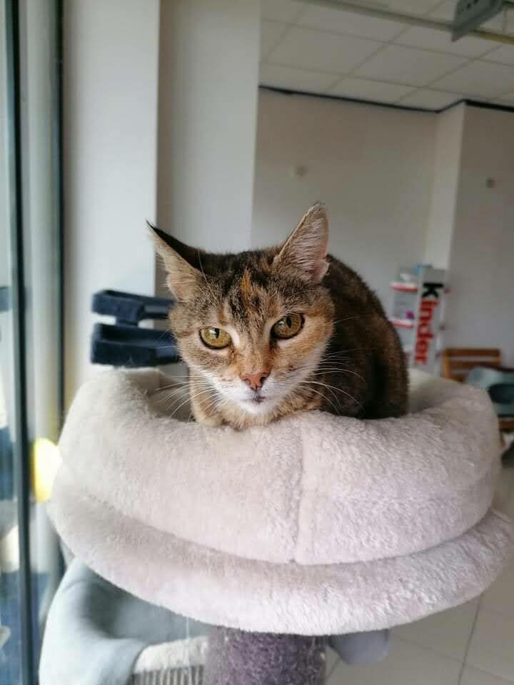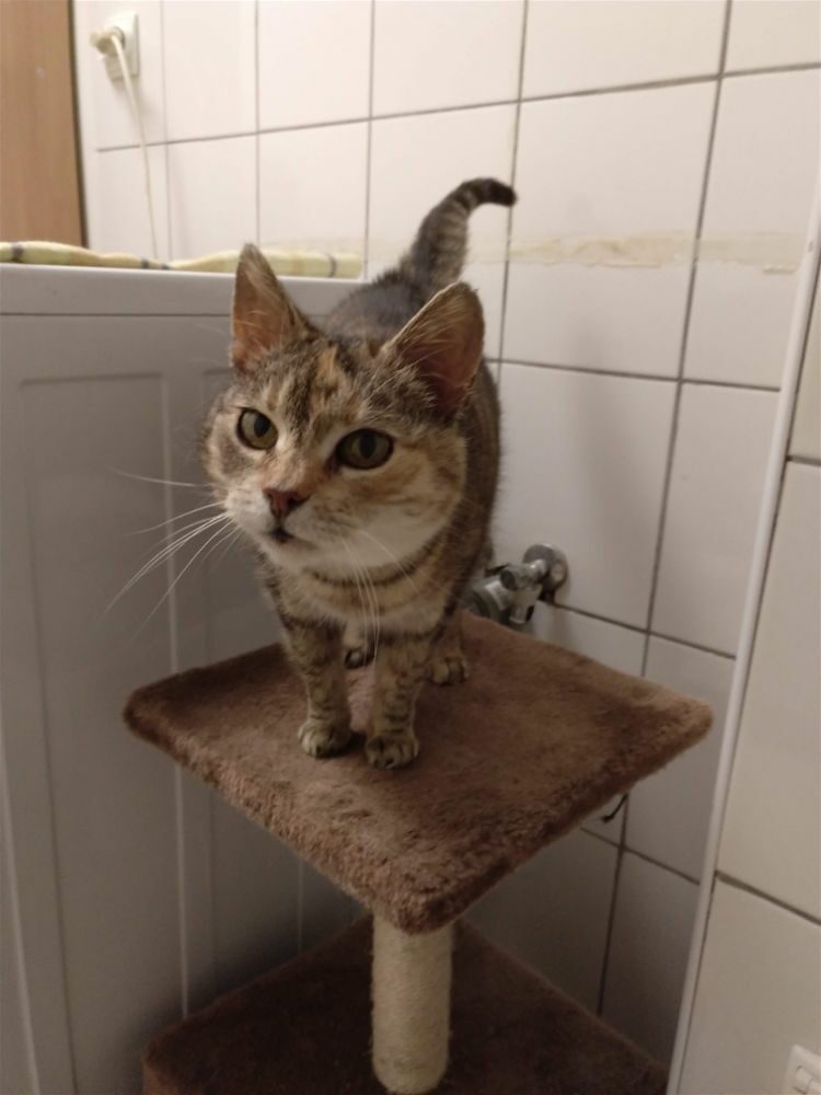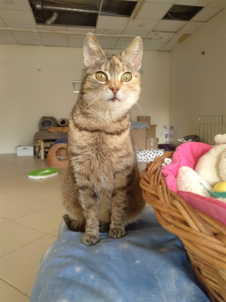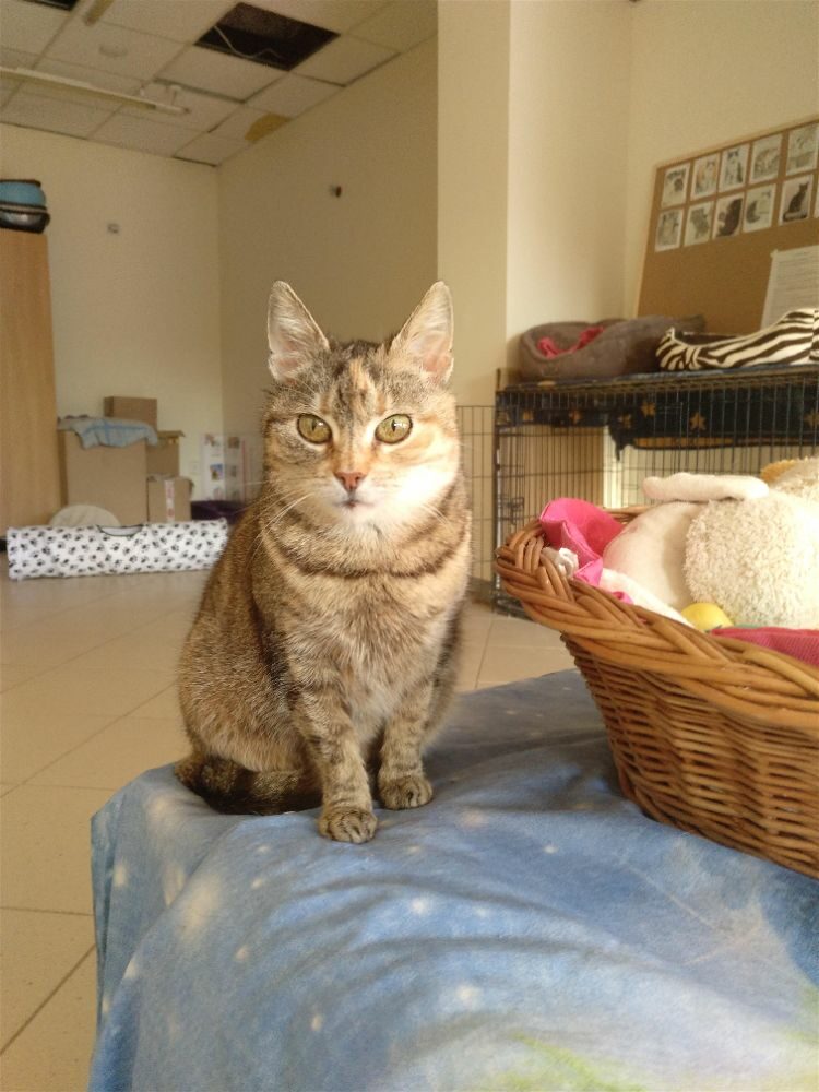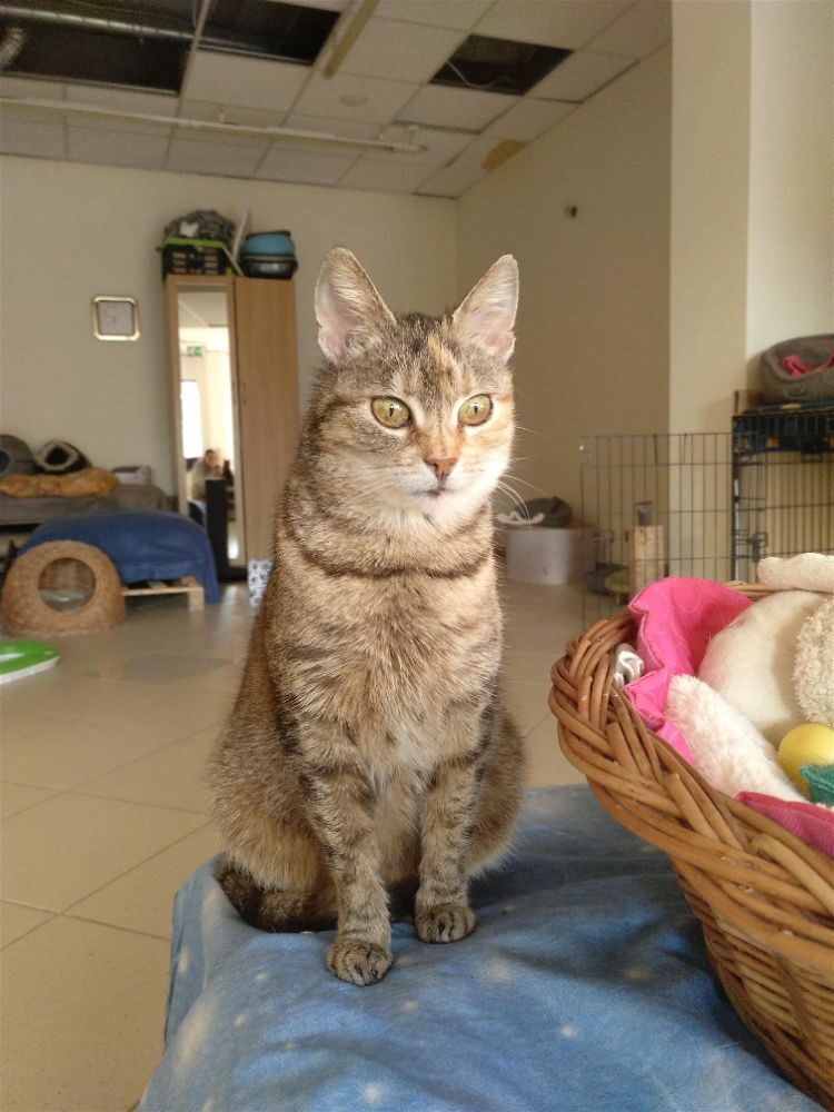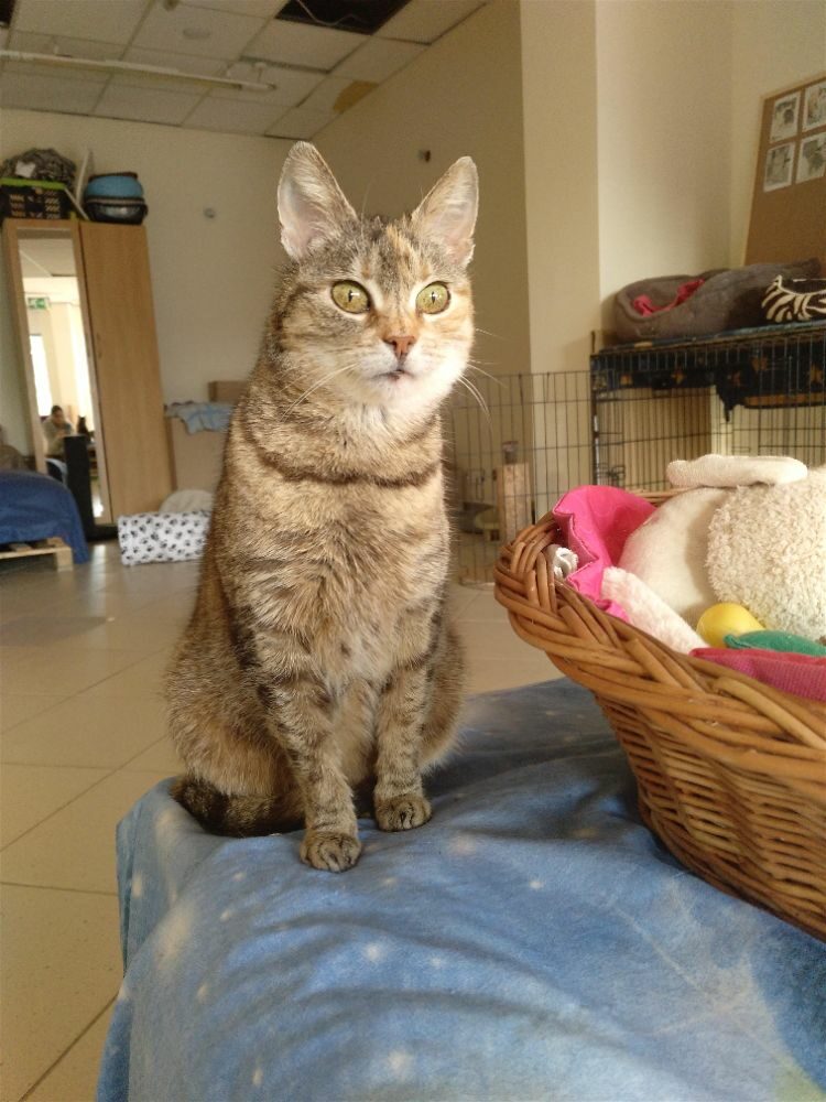 Króliczka trafiła do nas z jednej z interwencji. Mieszkała w strasznym miejscu, gdzie koty zamykane były w małych klatkach na króliki i żyły w ciasnocie i własnych odchodach. Króliczka, z jakiegoś powodu nie żywi urazy do człowieka. Jest spokojna, cichutka i kiedy tylko przychodzimy, staje na brzegu klatki czy półeczki i z wytęsknieniem wystawia główkę do głaskania. Króliczka ma też jedną cechę, która wyróżnia ją spośród innych kotów: wyjątkowo mądre, przenikliwe i ufne oczka, którymi patrzy na nas tak, że mamy ochotę wziąć ją pod pachę i zabrać do domu. Szukamy jej domu jako jedynaczce lub na dokocenie. Testy FeLV/FIV ujemne. Sterylizowana i szczepiona.