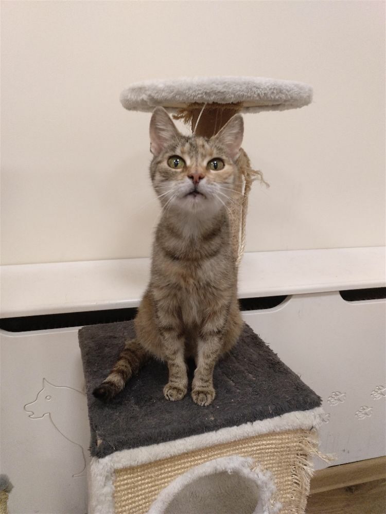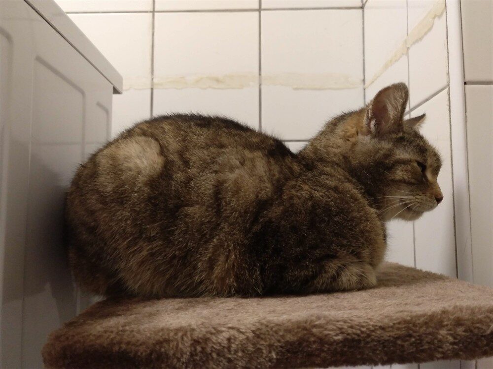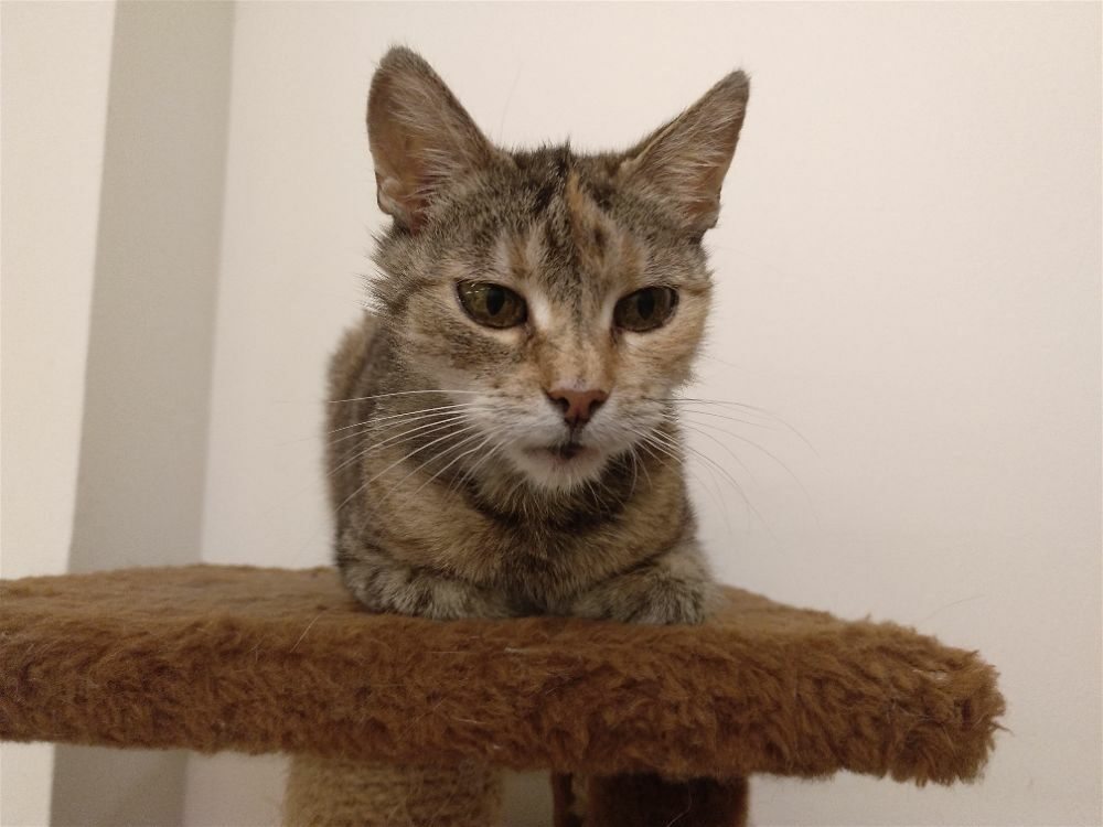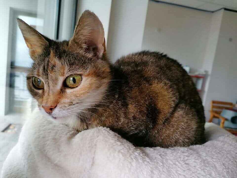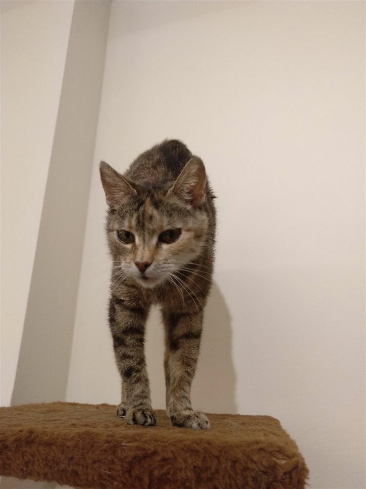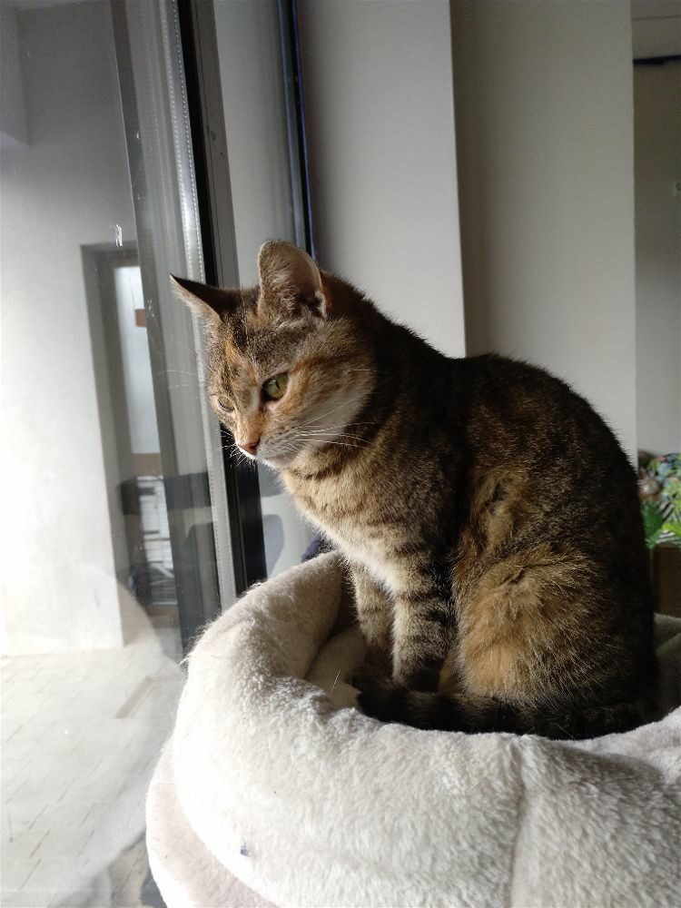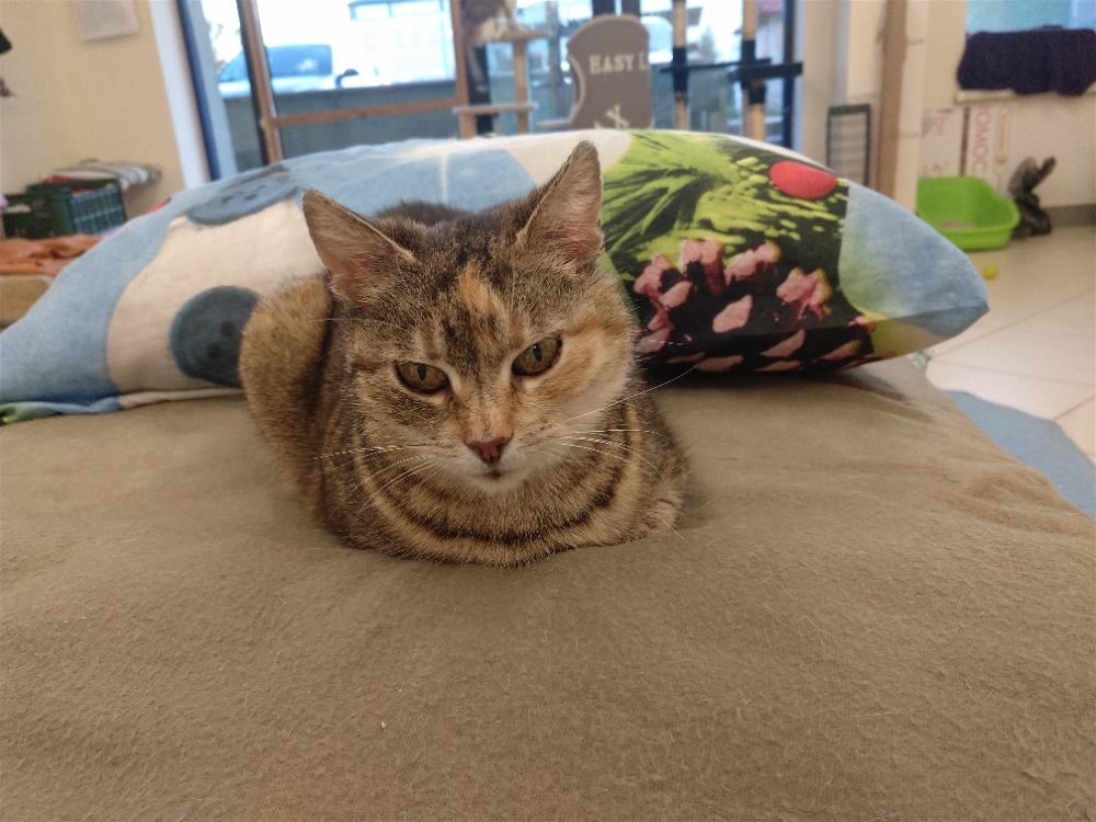 Króliczka trafiła do nas z jednej z interwencji. Mieszkała w strasznym miejscu, gdzie koty zamykane były w małych klatkach na króliki i żyły w ciasnocie i własnych odchodach. Króliczka, z jakiegoś powodu nie żywi urazy do człowieka. Jest spokojna, cichutka i kiedy tylko przychodzimy, staje na brzegu klatki czy półeczki i z wytęsknieniem wystawia główkę do głaskania. Króliczka ma też jedną cechę, która wyróżnia ją spośród innych kotów: wyjątkowo mądre, przenikliwe i ufne oczka, którymi patrzy na nas tak, że mamy ochotę wziąć ją pod pachę i zabrać do domu. Szukamy jej domu jako jedynaczce lub na dokocenie. Testy FeLV/FIV ujemne. Sterylizowana i szczepiona.