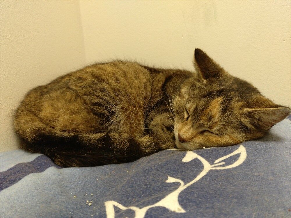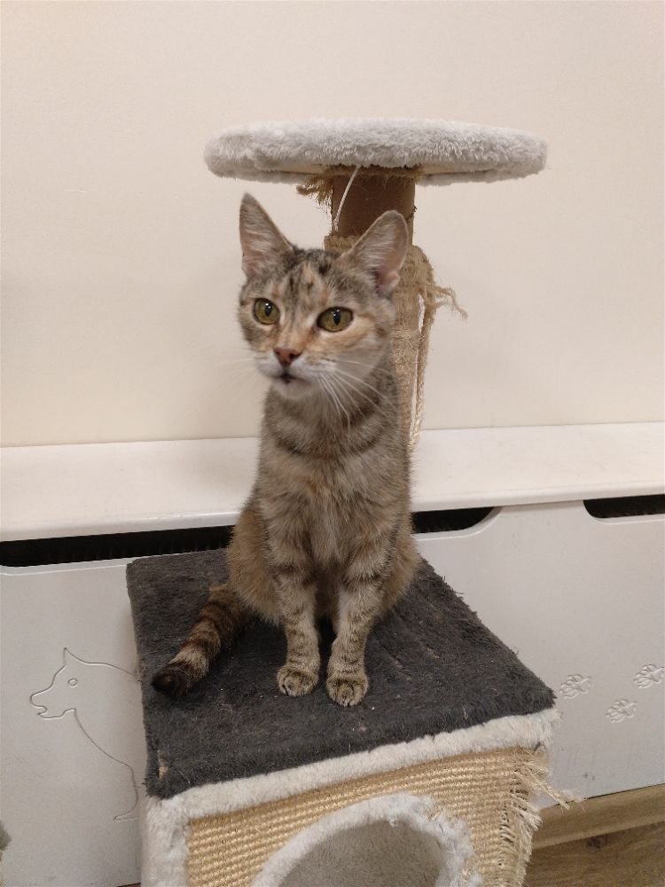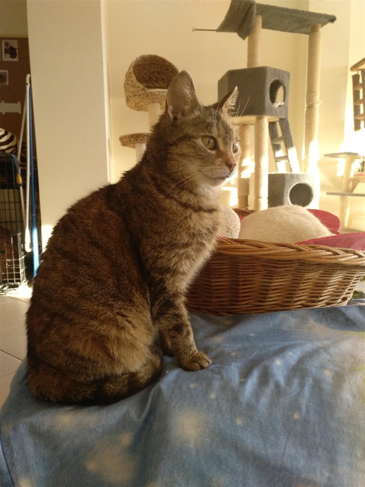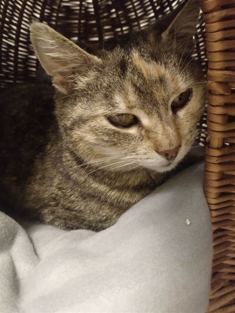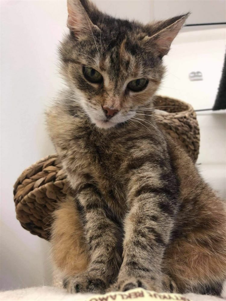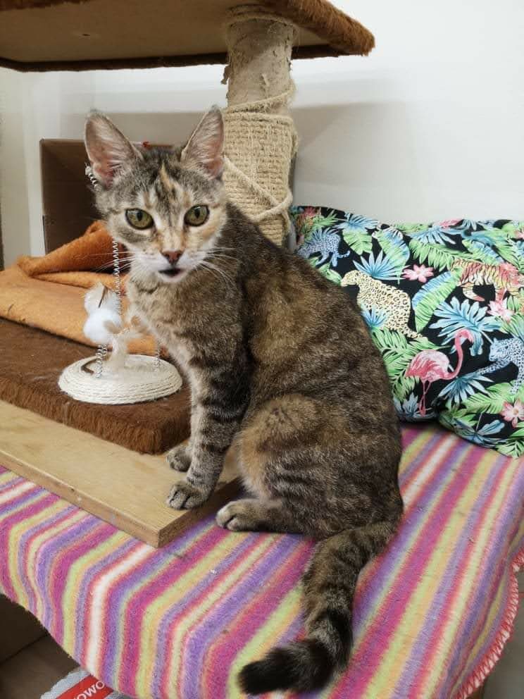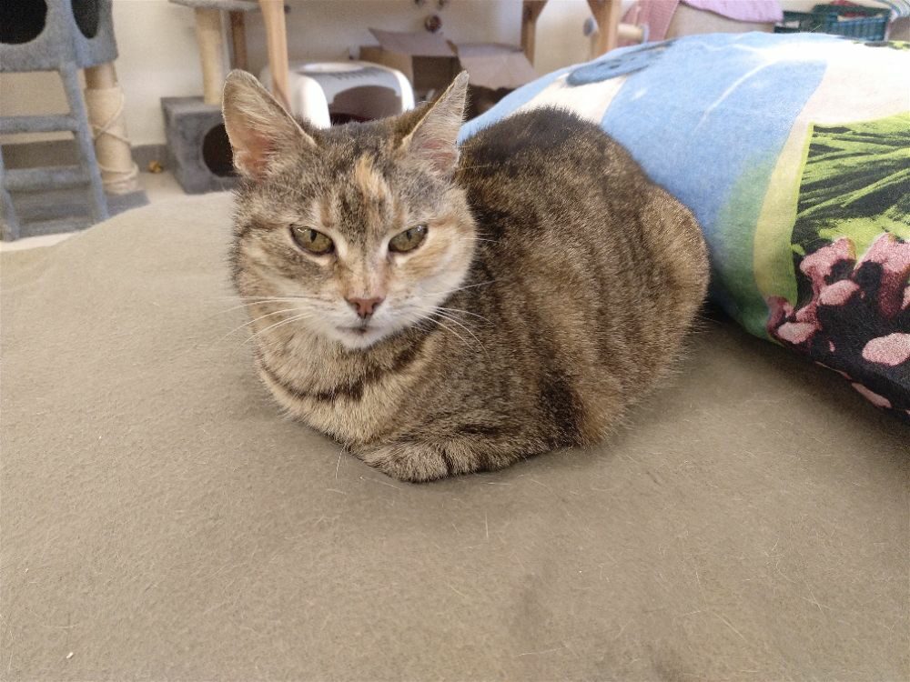 Króliczka trafiła do nas z jednej z interwencji. Mieszkała w strasznym miejscu, gdzie koty zamykane były w małych klatkach na króliki i żyły w ciasnocie i własnych odchodach. Króliczka, z jakiegoś powodu nie żywi urazy do człowieka. Jest spokojna, cichutka i kiedy tylko przychodzimy, staje na brzegu klatki czy półeczki i z wytęsknieniem wystawia główkę do głaskania. Króliczka ma też jedną cechę, która wyróżnia ją spośród innych kotów: wyjątkowo mądre, przenikliwe i ufne oczka, którymi patrzy na nas tak, że mamy ochotę wziąć ją pod pachę i zabrać do domu. Szukamy jej domu jako jedynaczce lub na dokocenie. Testy FeLV/FIV ujemne. Sterylizowana i szczepiona.