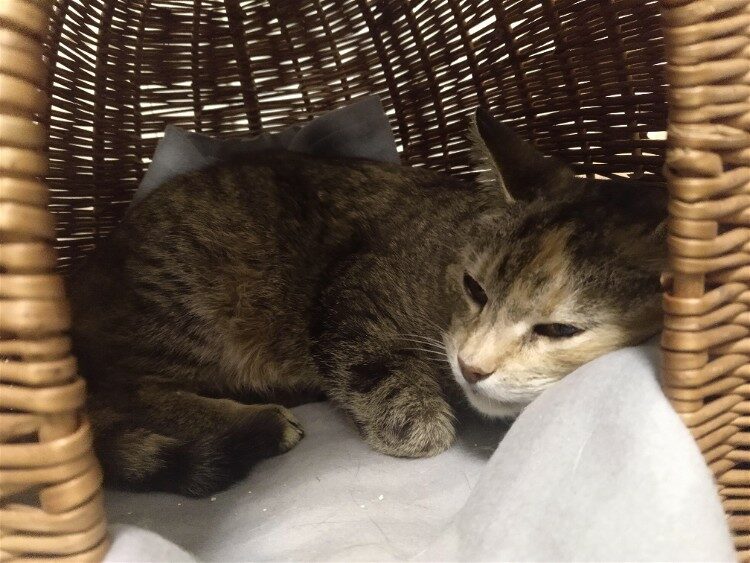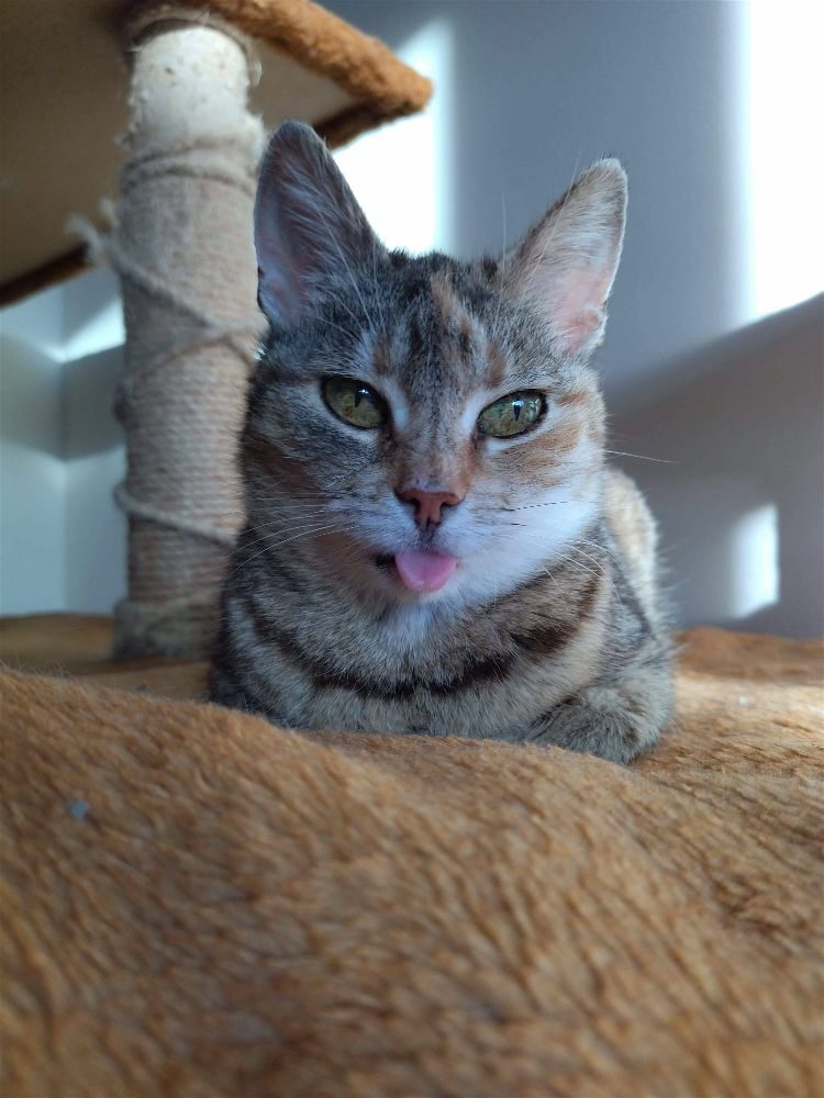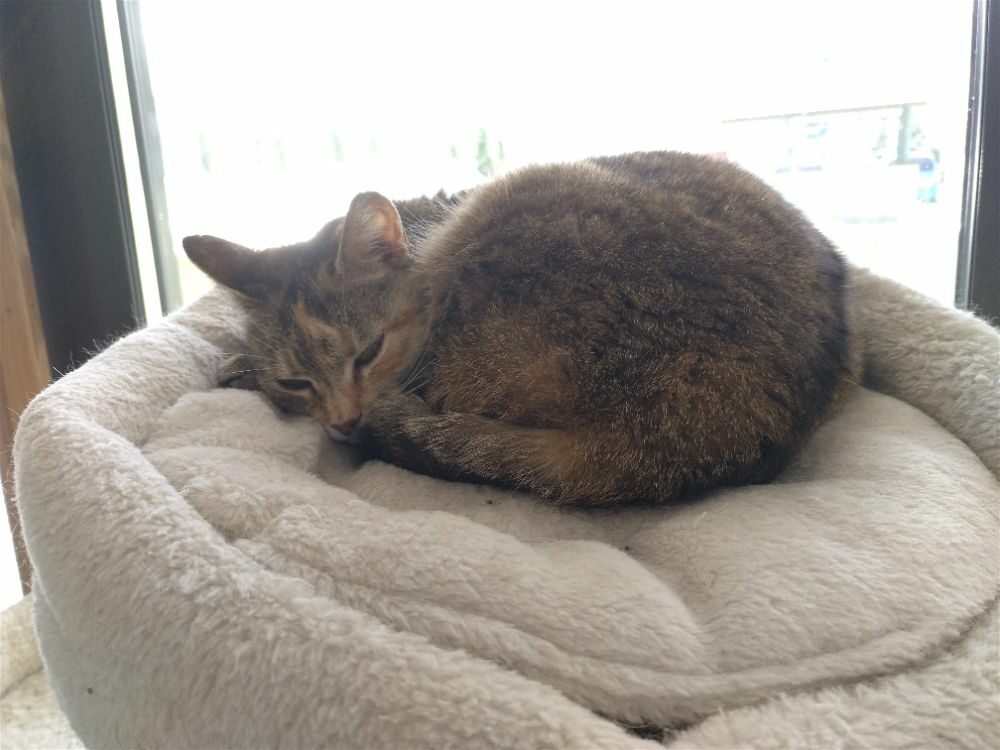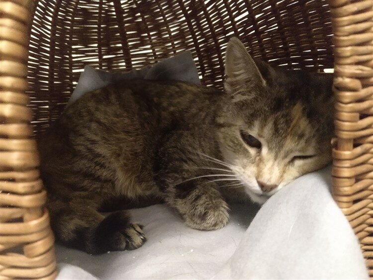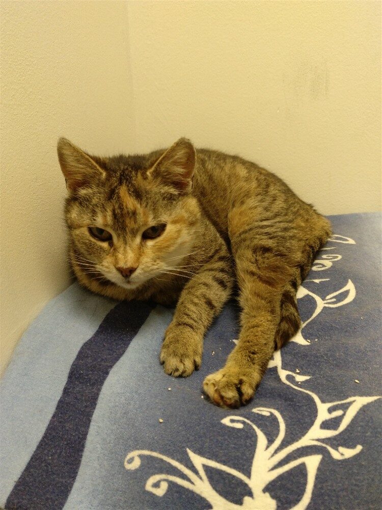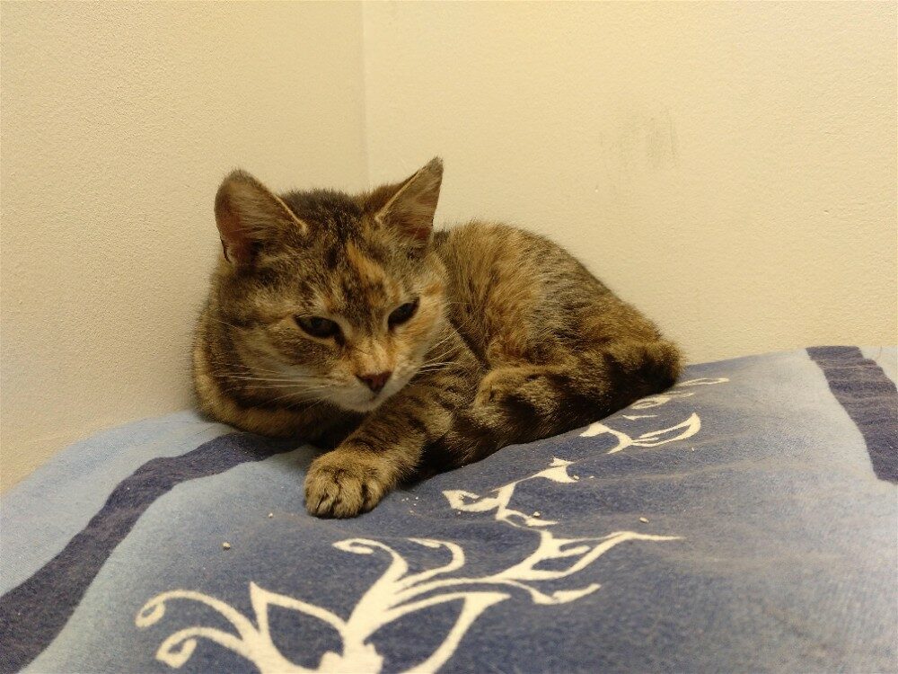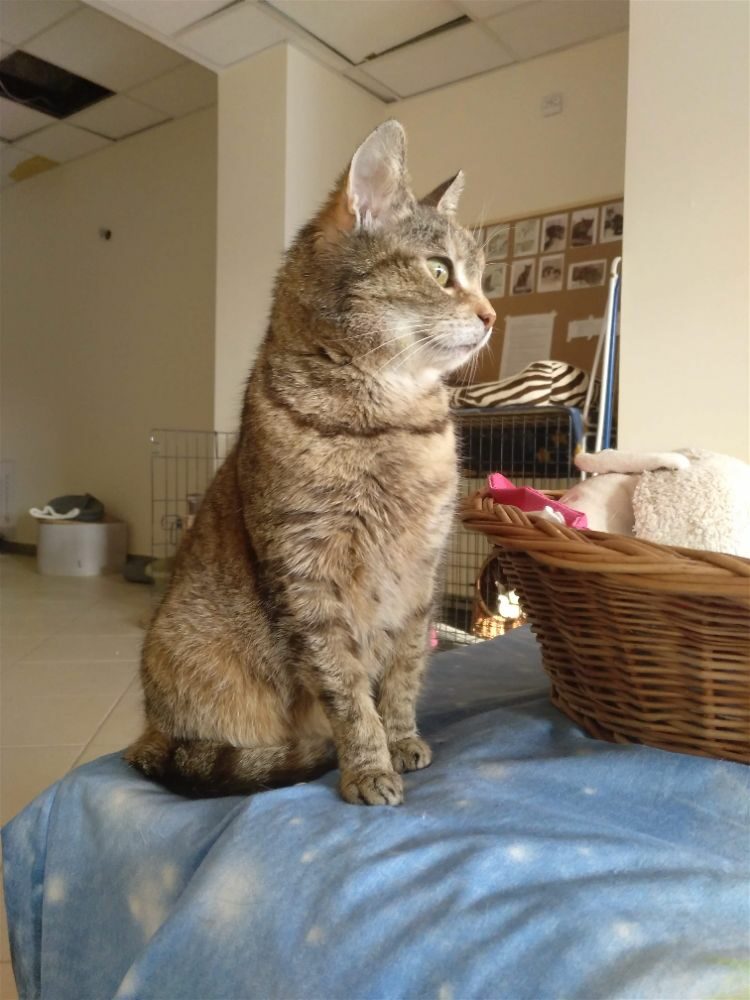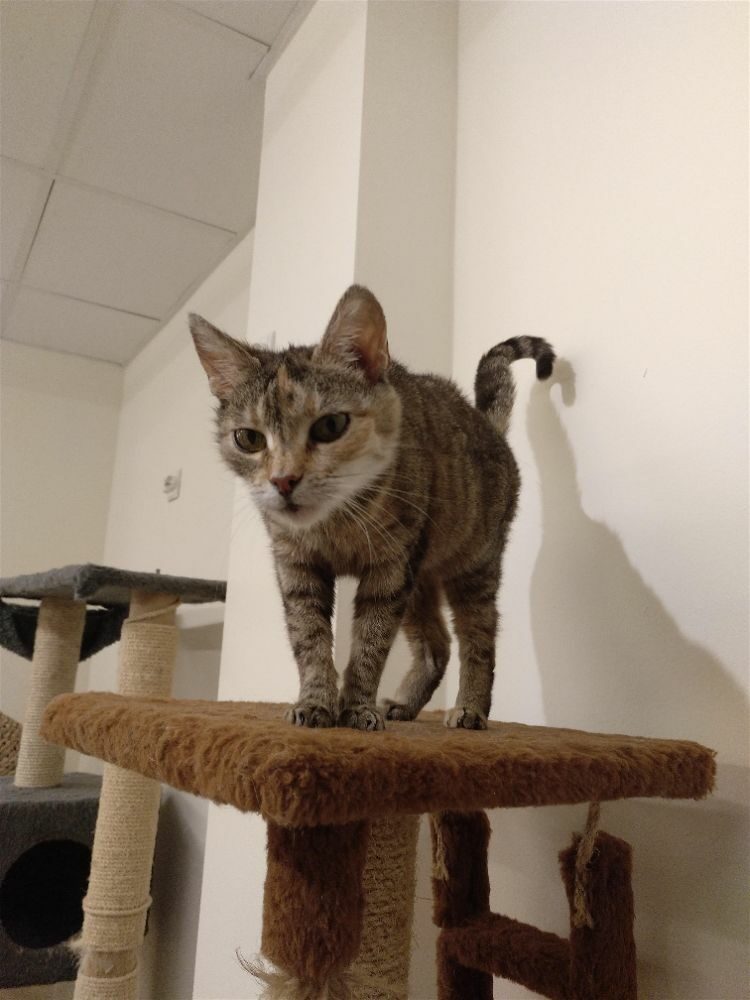 Króliczka trafiła do nas z jednej z interwencji. Mieszkała w strasznym miejscu, gdzie koty zamykane były w małych klatkach na króliki i żyły w ciasnocie i własnych odchodach. Króliczka, z jakiegoś powodu nie żywi urazy do człowieka. Jest spokojna, cichutka i kiedy tylko przychodzimy, staje na brzegu klatki czy półeczki i z wytęsknieniem wystawia główkę do głaskania. Króliczka ma też jedną cechę, która wyróżnia ją spośród innych kotów: wyjątkowo mądre, przenikliwe i ufne oczka, którymi patrzy na nas tak, że mamy ochotę wziąć ją pod pachę i zabrać do domu. Szukamy jej domu jako jedynaczce lub na dokocenie. Testy FeLV/FIV ujemne. Sterylizowana i szczepiona.