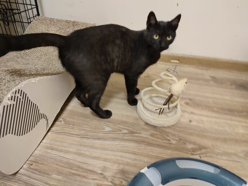 Zmarznięty młody kocurek, próbował dostać się do sklepu w Zbydniowie, w poszukiwaniu ciepła.