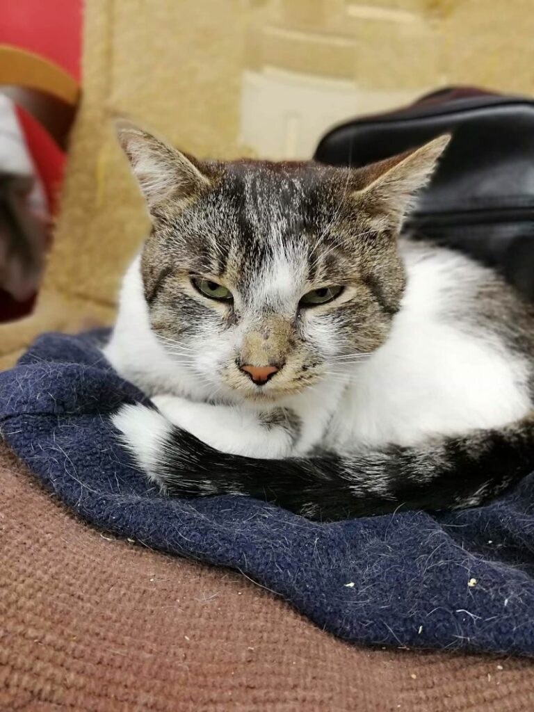 Kotek przybłąkał się kilka miesięcy temu na jedną z posesji… a ponieważ tam dostał jeść, a u ludzi obok przegoniono go łopatą… postanowił zostać.