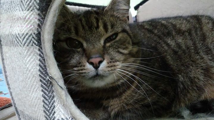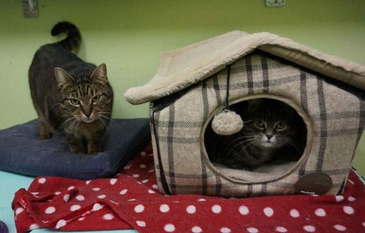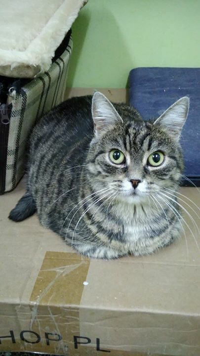 Te dwa kotki trafiły do fundacji po śmierci swojego opiekuna. Opiekun był starszą osobą, dbającą o koty w naszym mieście. Przygarniał je do siebie, leczył, sterylizował i szukał dobrych domów. Te dwa były jego ukochanymi, a dbał o nie bardziej niż o siebie. Jako, że mieszkał w mieszkaniu socjalnym, po jego śmierci mieszkanie trzeba było oddać do dyspozycji miasta, a chętnych do opieki nad dwójką kotów nie było. Tak trafiły do nas kocur Maciuś i kotka o imieniu… Stoliczek (podobno zawsze towarzyszyła opiekunowi w posiłkach, siedząc na stoliczku). Koty nie rozumiały dlaczego nagle zostały same i z pewnością wyczuwały, że i dla nich sytuacja nie skończy się dobrze… Zgodziliśmy się zabrać je do siebie, mimo że mieliśmy obawy, jak domowe koty odnajdą się w fundacyjnym zamieszaniu. Na szczęście oba doceniły nasze szczere chęci i pełną miseczkę i zaakceptowały nową sytuację. Dziś witają nas entuzjastycznie za każdym razem, gdy je odwiedzamy. Pomiałkują radośnie i ocierają się.