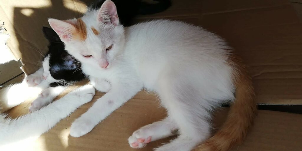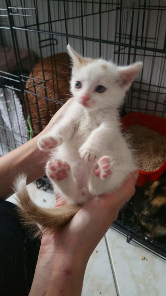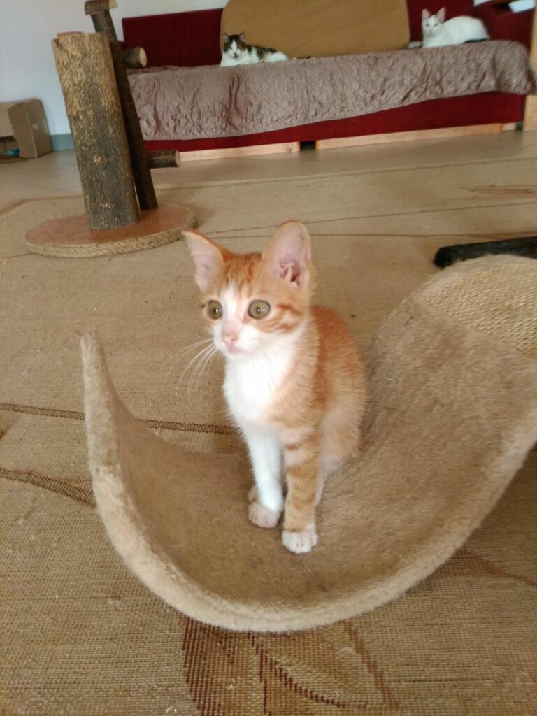 Nutella, roczna kotka, najzwyklejsza burasia wielkości 5 miesięcznego kociaka. Ta drobinka ma bardzo łagodny charakter. Nie ma w niej cienia agresji, ani chęci dominacji. Przyzwyczajona jest do życia z innymi kotami, którym na co dzień ustępuje. Uwielbia głaskanie, przytulanie, ganianie za myszką i piłeczkami. Nie lubi zbędnych hałasów i potrzebuje chwili na aklimatyzację do nowych warunków- jest nieśmiała, ale nie bojaźliwa.