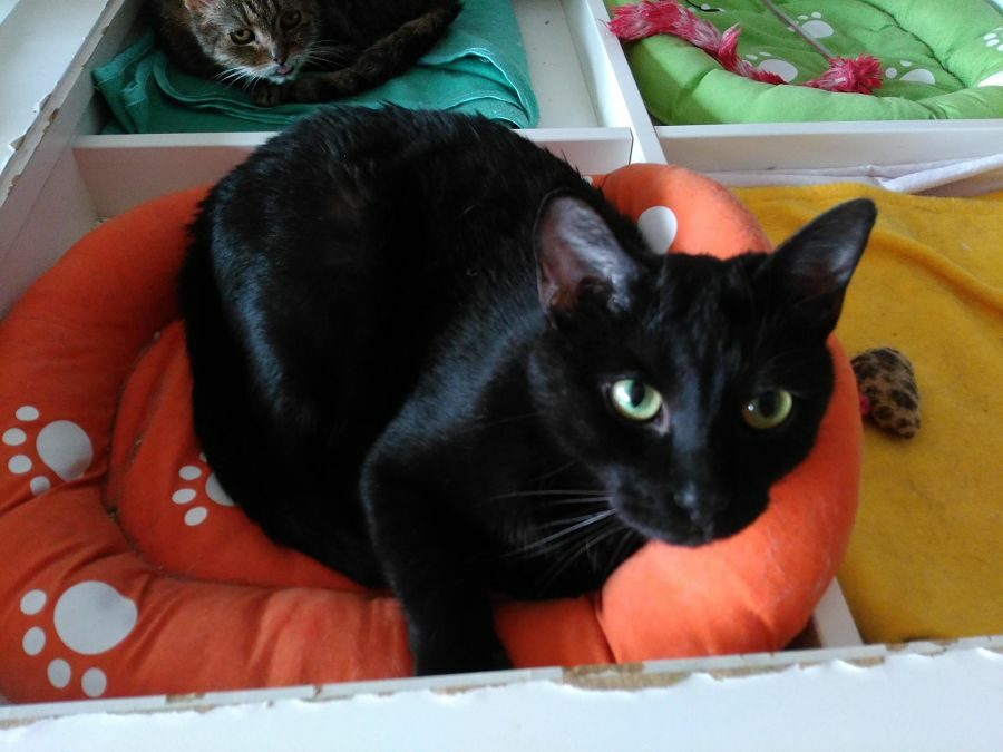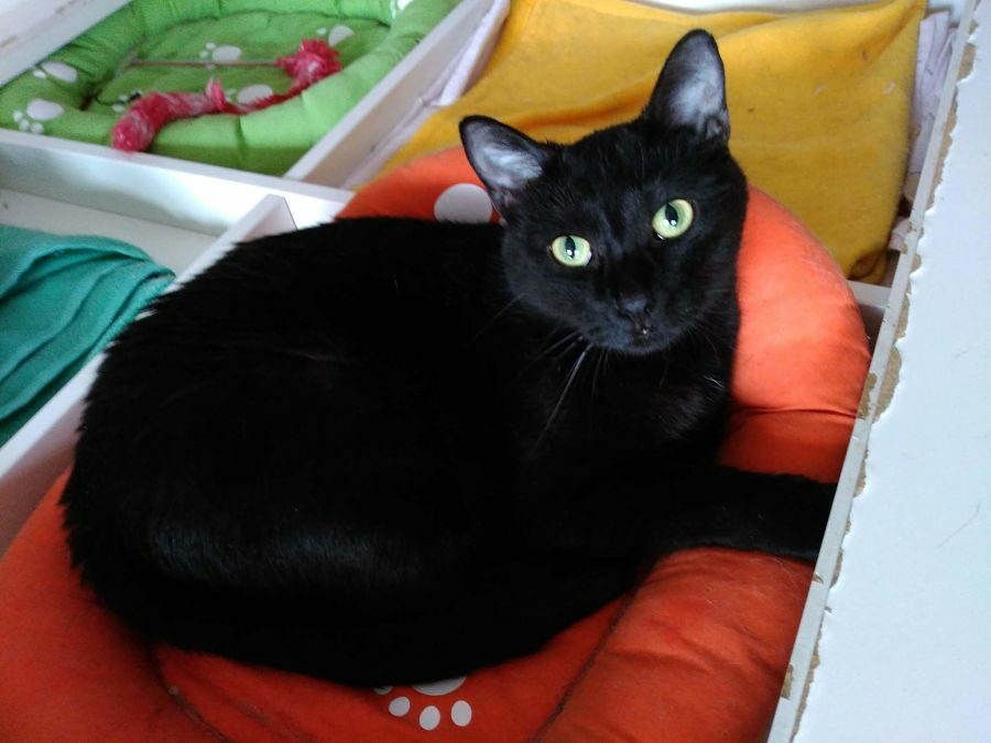 Jedwabek jest pod opieką fundacji od długiego czasu i nikt się nim nie interesuje, może dlatego, że jest czarny, może za mało przebojowy… Trafił do nas prosto z parkingu jednej z fabryk w strefie przemysłowej. Kociak kręcił się, szukając uwagi człowieka dosłownie pod tirami. Nie było to dla niego bezpieczne miejsce.