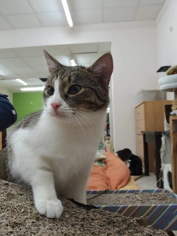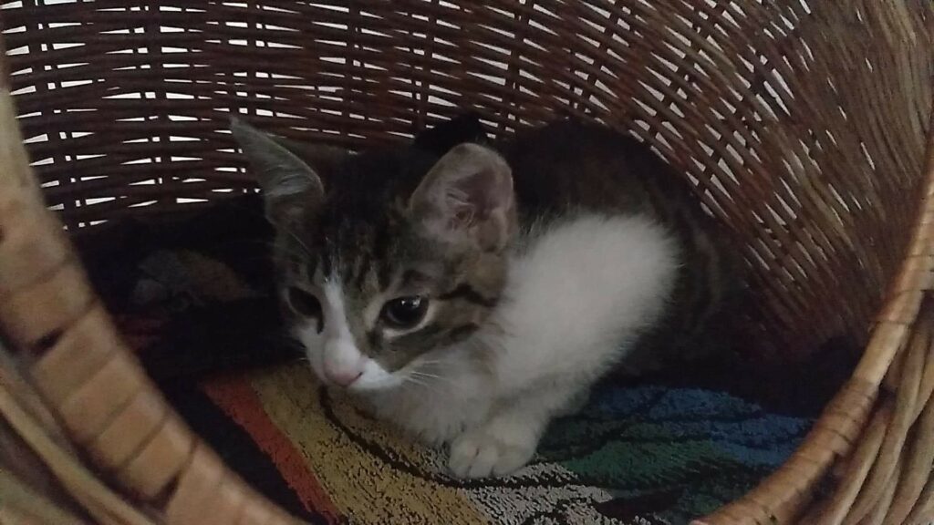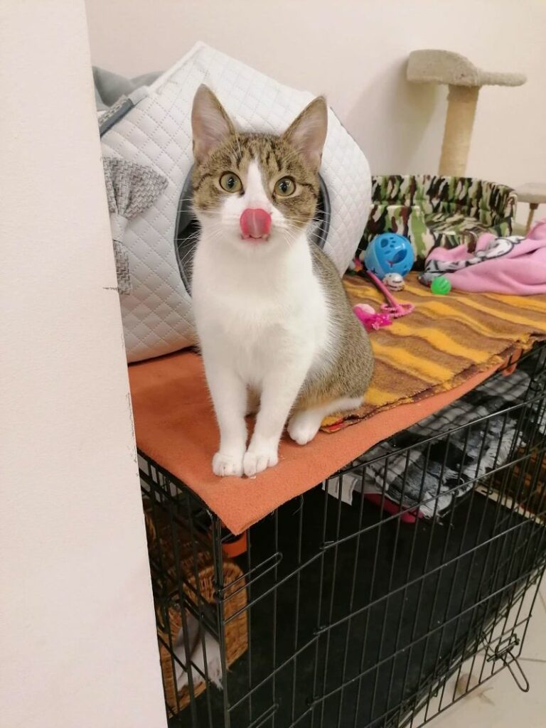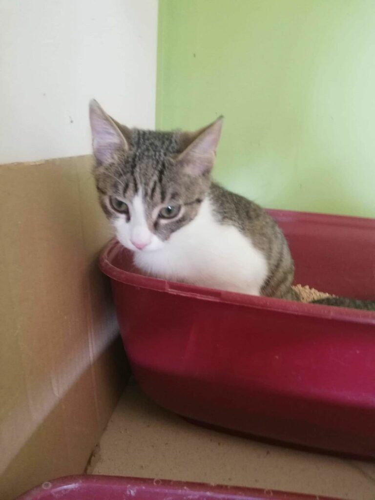 Oto nasz nowy nabytek z interwencji. Morusek – bo tak dostał na imię niemożliwie brudny brzdąc błąkający się w centrum miasta. Kociak jest jeszcze wystraszony i nie do końca rozumie gdzie trafił, ale już chciałby wyjść z klatki i witać się z kotami.