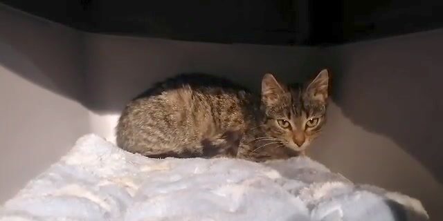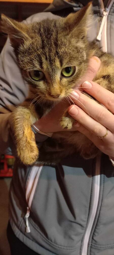 Otrzymaliśmy zgłoszenie o małym kociątku, zagubionym gdzieś na jednej z wsi. Nie mogliśmy pozwolić, aby kolejne kocie dziecko umarło bez pomocy, stąd od razu zgodziliśmy się na przyjęcie go.