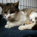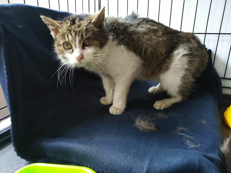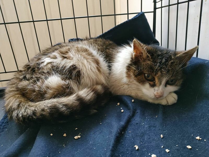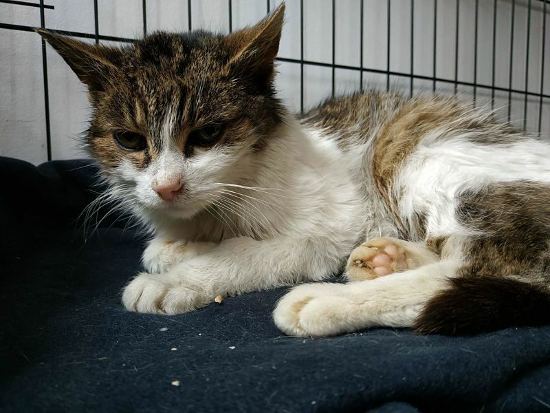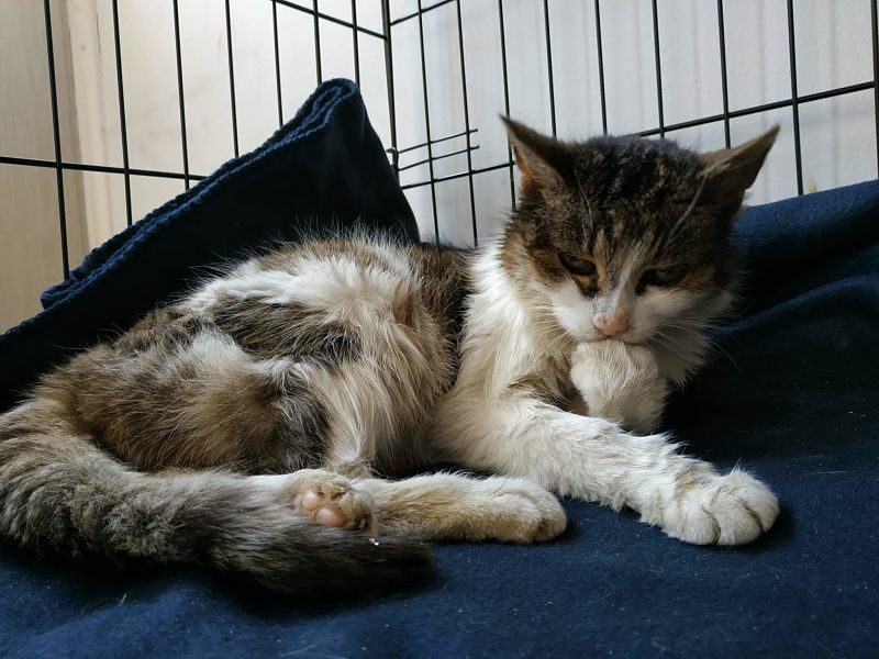 Przybłąkała się do jednego z domów i mimo obecności psów, nie chciała odejść. Kotka miała za ciasną obroże (pewnie założoną, kiedy jeszcze była małym kociakiem), pod jej puchatym futerkiem sterczą wszystkie kości, a w uszach zrobił się duży i bolesny stan zapalny spowodowany swierzbowcem. Kotka od początku miała słaby apetyt i zdawała się odwodniona, mimo że sporo piła. Jej uszy zainfekowane były świerzbowcem, a stan ogólny wskazywał na silne zarobaczenie. Po kilku dniach podkarmiania, po wstępnym odrobaczeniu, Malinka trafiła do weterynarza na badania. Niestety, nie są one pocieszające. Kotka ma niewydolność nerek. Poziom jej kreatyniny to prawie 4, a mocznika 400! Konieczne są codzienne wizyty w lecznicy, kroplówki oraz zakup specjalnych preparatów.  Poza tym, kotka jest nosicielką FIV, co oznacza, że ma bardzo słabą odporność – i nad tym też musimy popracować. Chcemy dać Malince szanse. Kotka z pewnością niewiele dobrego w życiu przeżyła, a ma w sobie jeszcze ogromne pokłady mruczenia i uwielbienia dla człowieka. Kotka dostaje specjalne preparaty wspomagające pracę nerek i codziennie dzielnie znosi kroplówki. Niestety ma spory problem z apetytem, co niestety jest typowe dla kotków z niewydolnością nerek. Na pewno jednak czuje się lepiej i docenia miękki kocyk i codziennie głaskanko.