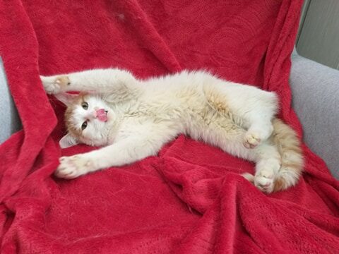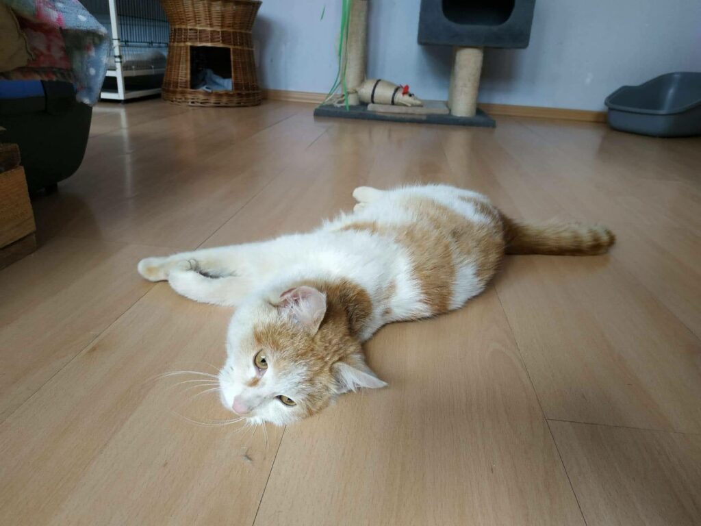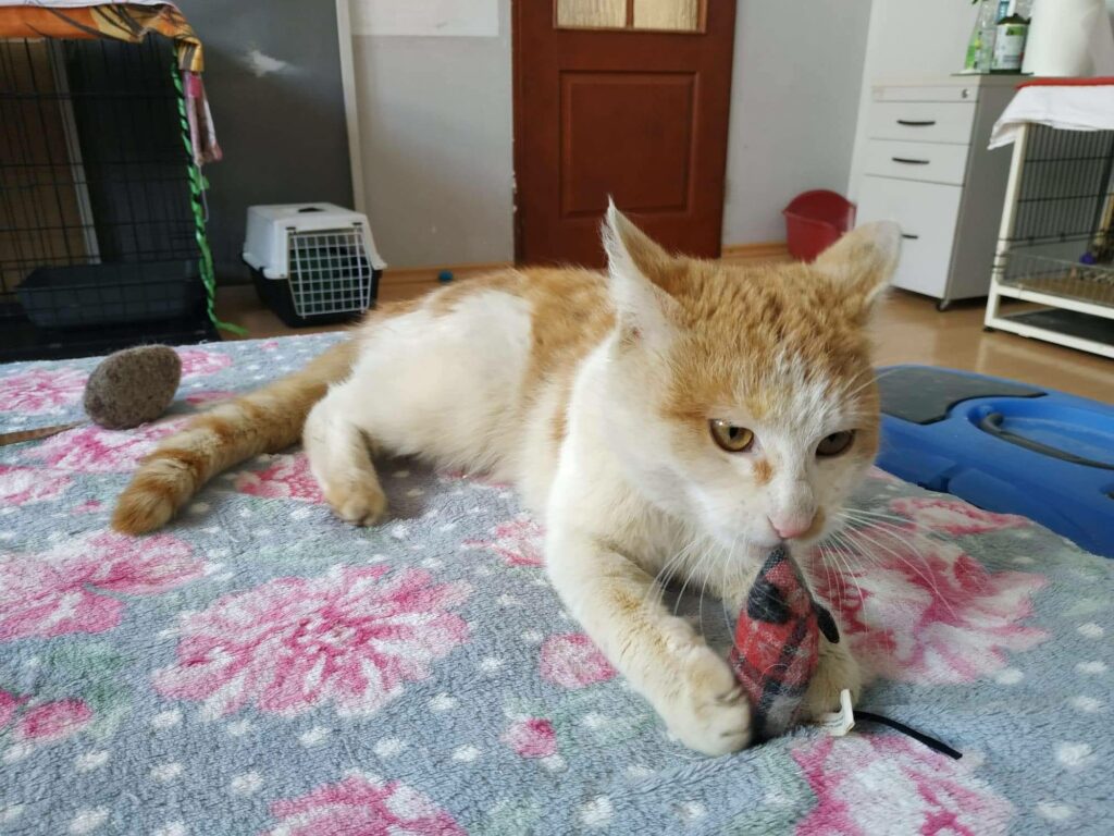 Kolejne rude cudo pod naszą opieką. Niewiele brakowało, a zginąłby pod kołami na przemysłowym terenie, z dala od jakichkolwiek osiedli mieszkalnych. Przyjazny, grzeczny, młody kocurek – musiał mieć kiedyś dom, ale niezbyt odpowiedzialny. Nie był nawet wykastrowany.